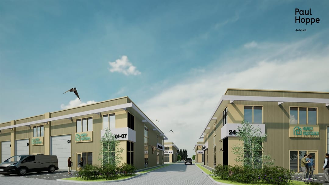 Iedere unit beschikt over 3 tot 6 eigen parkeerplaatsen direct voor de bedrijfsruimte.