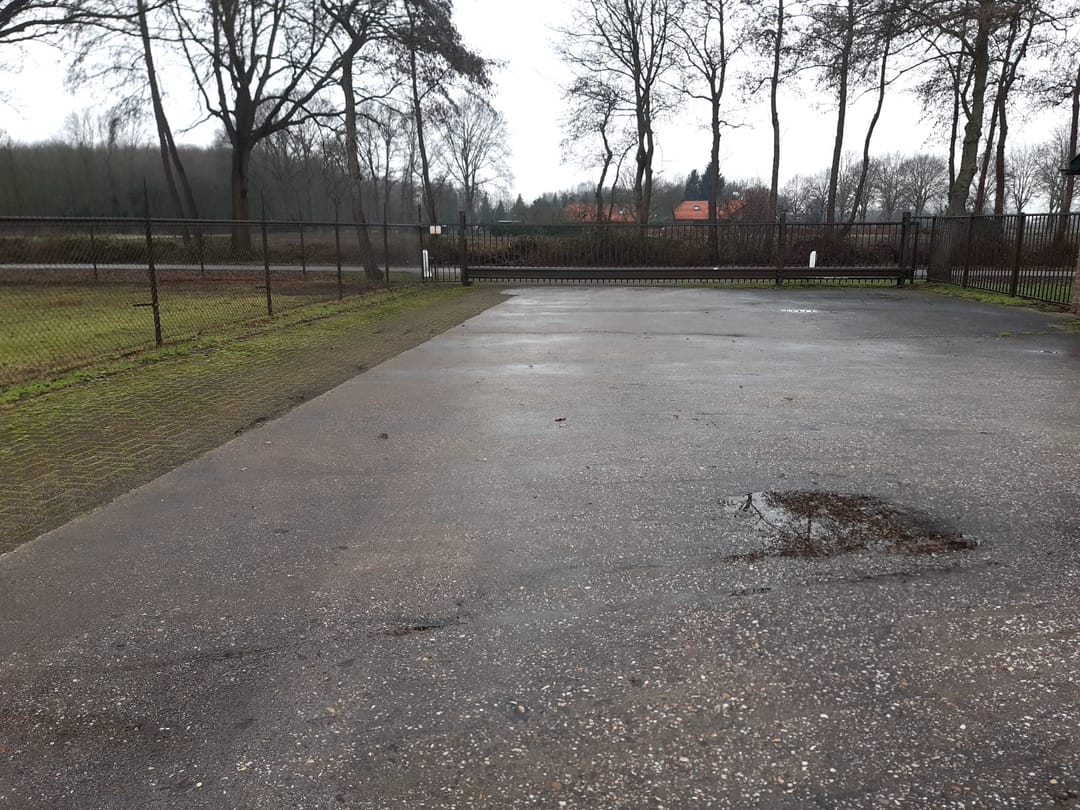 Het object heeft voldoende parkeergelegenheid. Er is een ruim buitenterrein welke afgesloten wordt door middel van een grote schuifpoort.