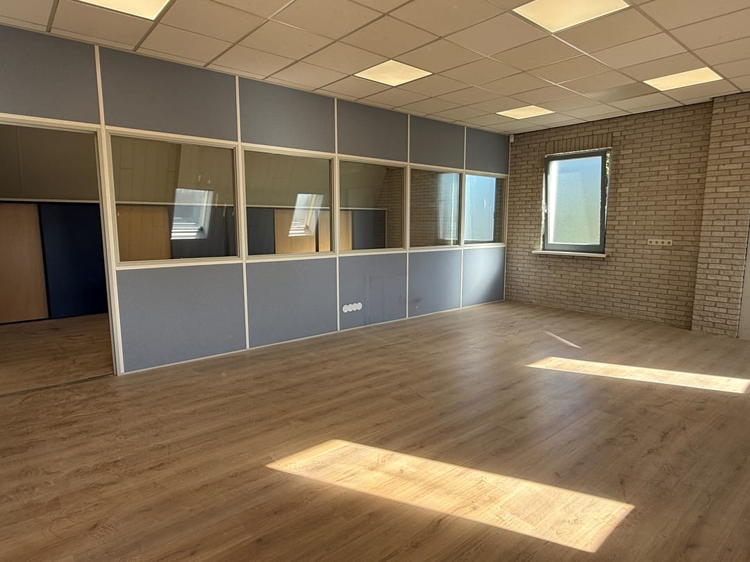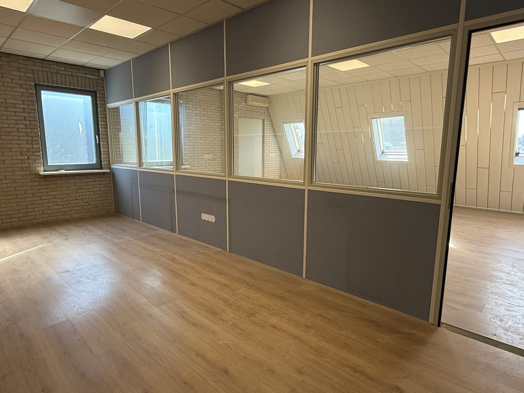 De bedrijfsruimte is aan de voorzijde voorzien van een loopdeur en een overheaddeur. Het kantoor op de eerste verdieping is voorzien van een PVC vloer en een systeemplafond met ledverlichting. De kozijnen zijn voorzien van dubbele beglazing.