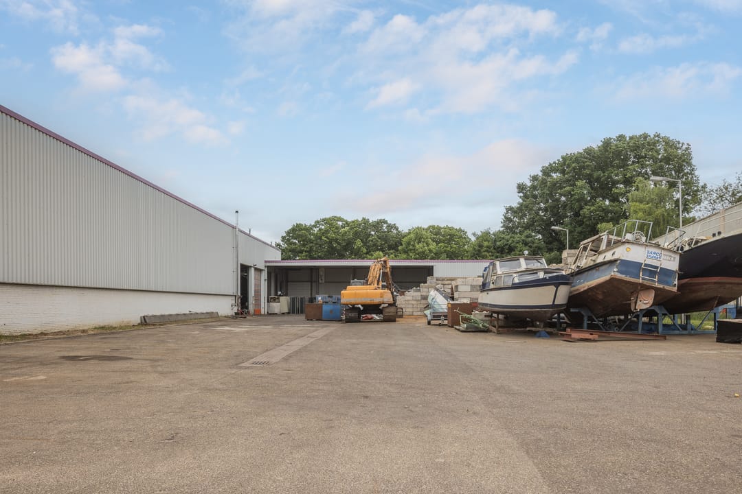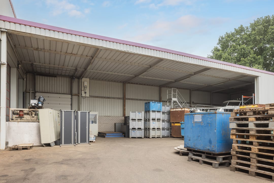 Het terrein is toegankelijk vanaf de zuidzijde. Het voorgelegen buitenterrein is ideaal voor stalling van auto's of trailers en opslag of bewerking van goederen. Een deel van het terrein is ingericht met een vloeistofdichte vloer en omheind met betonnen blokken, ideaal voor het ontmantelen en/of bewerken van goederen welke zijn voorzien van vloeibare stoffen. Het pand is rondom toegankelijk waarbij er aan de westkant een grote schuifdeur is gesitueerd. Aan de oostkant bevindt zich een half open overkapping v.v. maaivelddeuren naar de bedrijfsruimte en achterzijde van het pand.