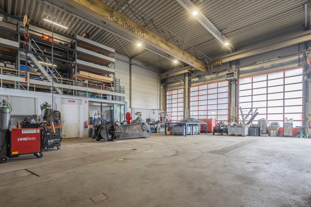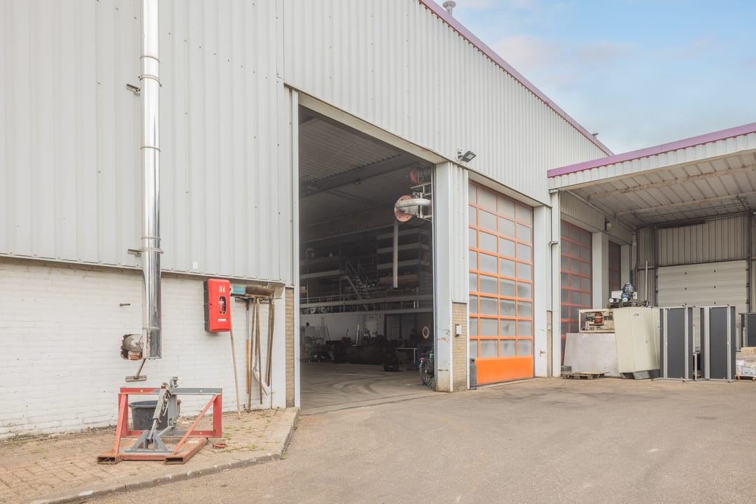 - Bedrijfshal v.v. 5 maaiveld deuren waarvan 4 in gebruik, overkapping v.v. 1 maaiveld deur