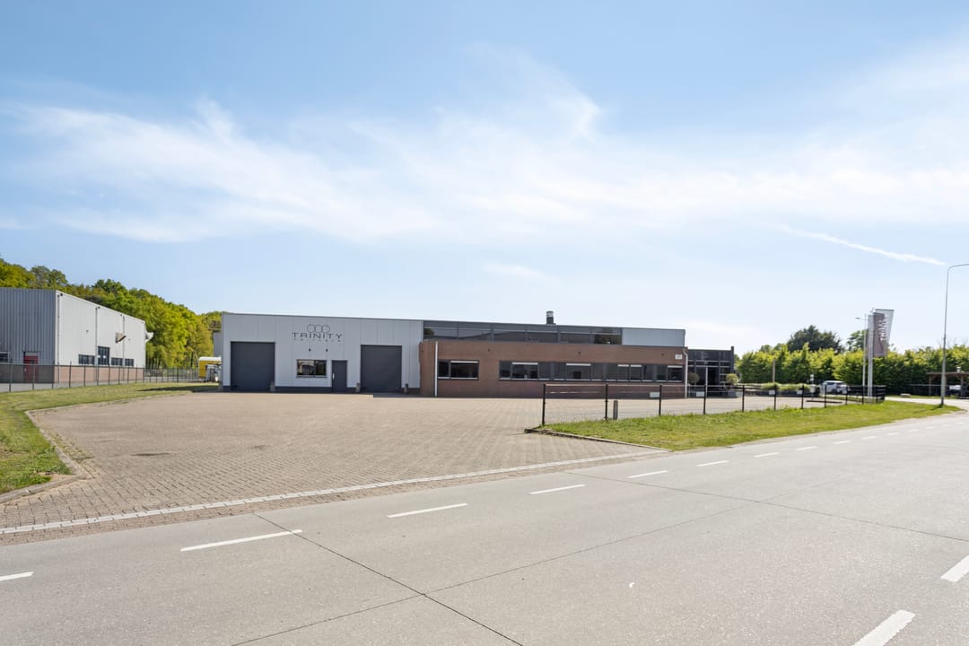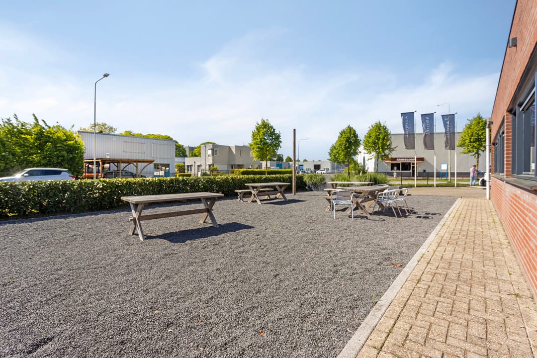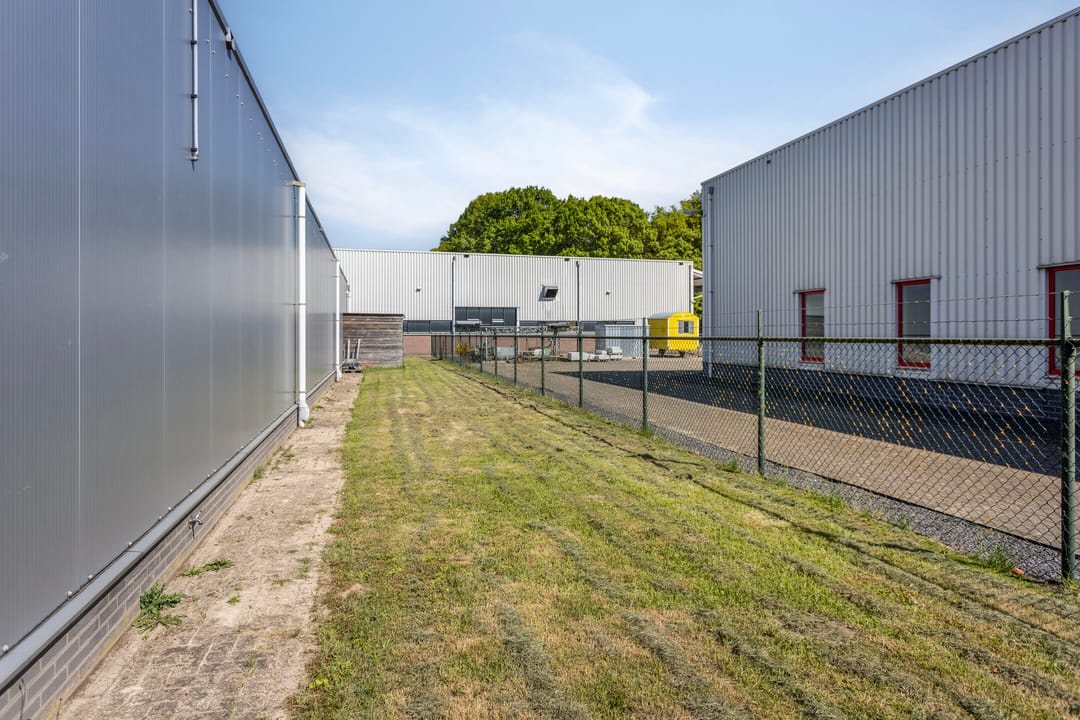 Het gebouw is gelegen op een ruim terrein welke uiteraard is voorzien van een eigen in- en uitrit. Het terrein aan de voorzijde is ca. 850 m2 groot waardoor er meer dan ruime parkeergelegenheid aanwezig is. Het ruime buitenterrein maakt de routing richting de bedrijfsruimtes met dubbele maaivelddeuren zeer praktisch voor auto's, busjes of zelfs een vrachtauto. Het terrein is grotendeels verhard middels betonnen klinkers en omheind met een zwart uitgevoerd stalen hekwerk. Het terrein beidt nog mogelijkheden tot uitbreiding van het pand. Het overige gedeelte van het terrein is ingericht met groenvoorziening, een berging en een tuinhuisje