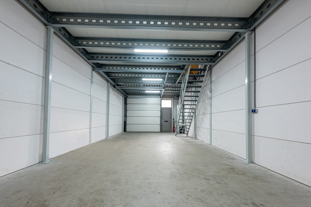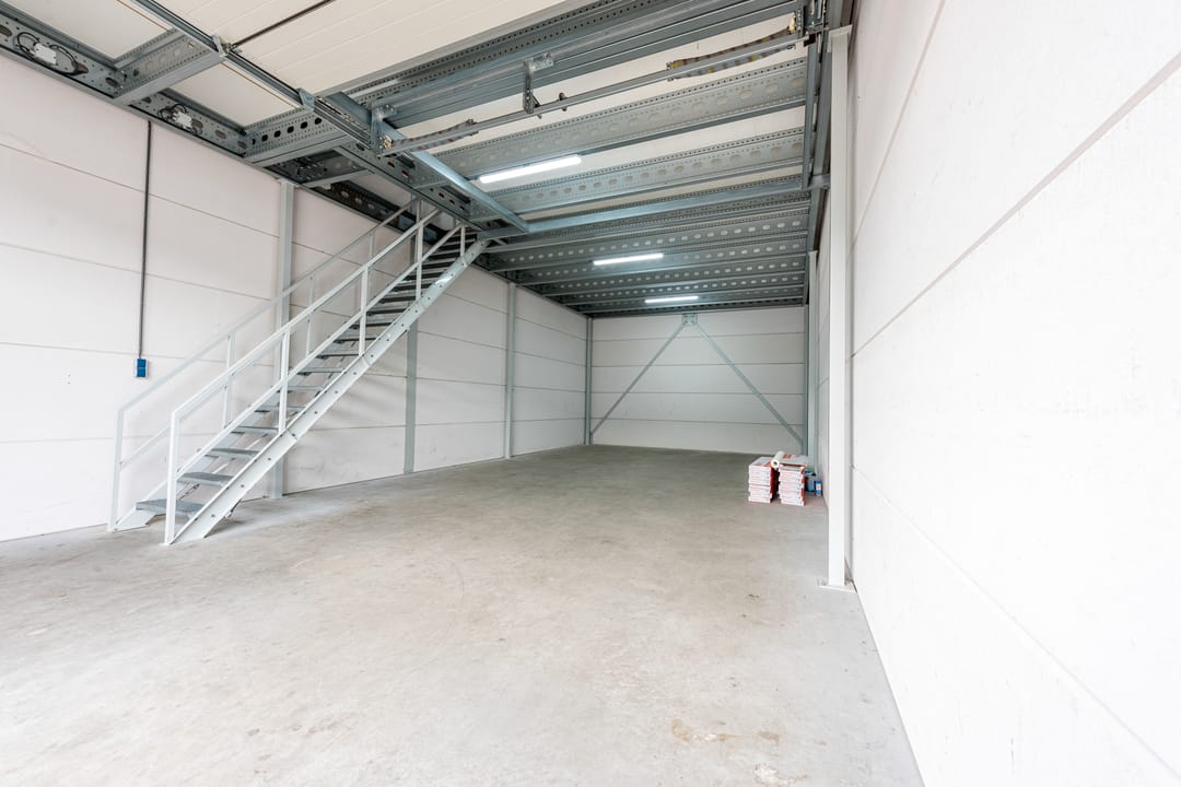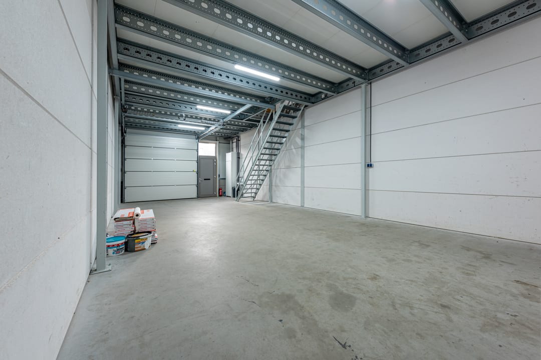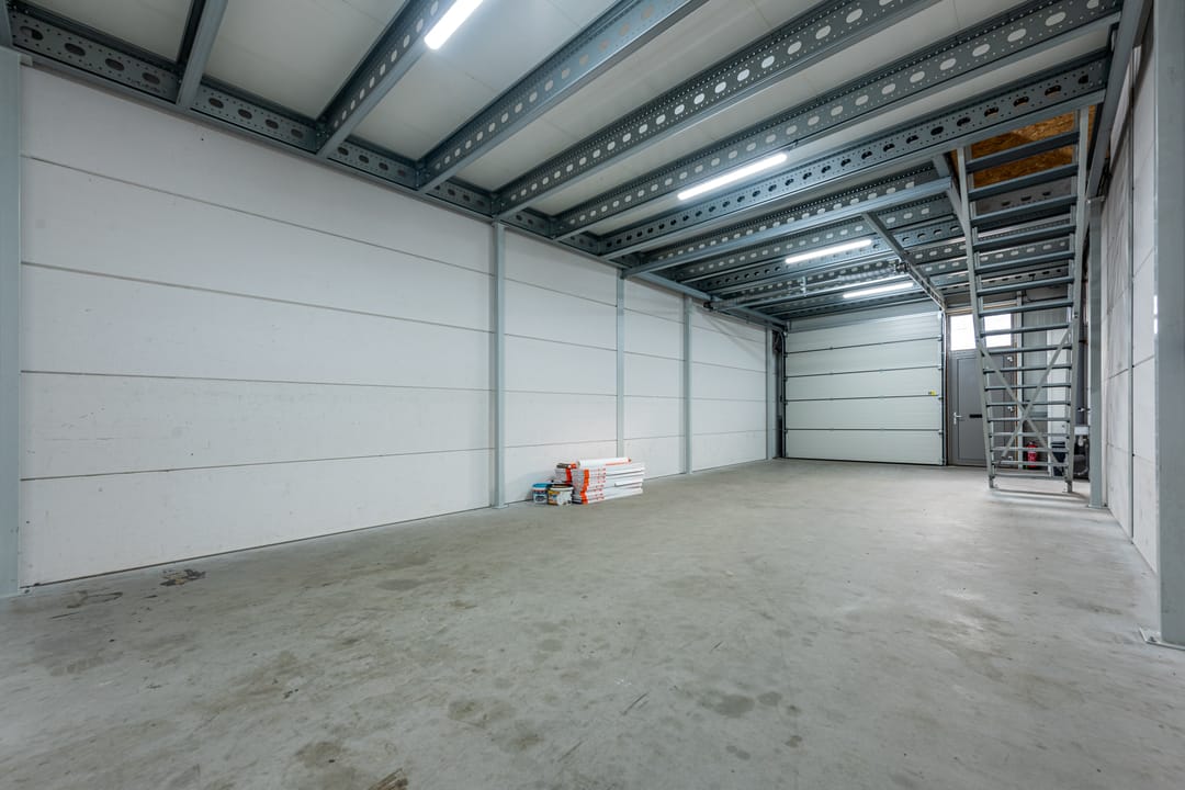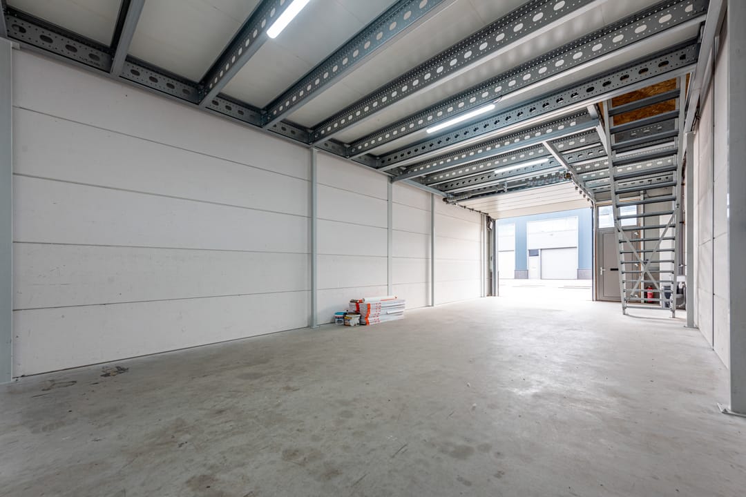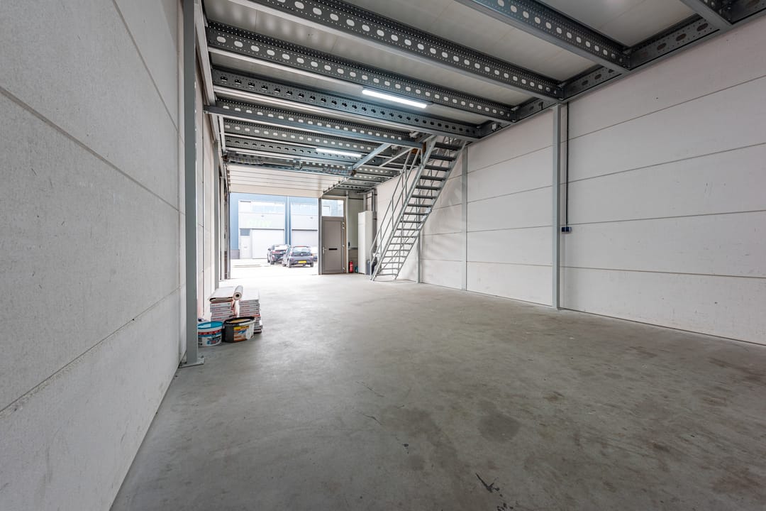 Moderne en praktische bedrijfsruimte met verdiepingsvloer, kantoor, pantry en elektrische roldeur. Gelegen op een goed bereikbare locatie en voorzien van twee eigen parkeerplaatsen voor de deur.
