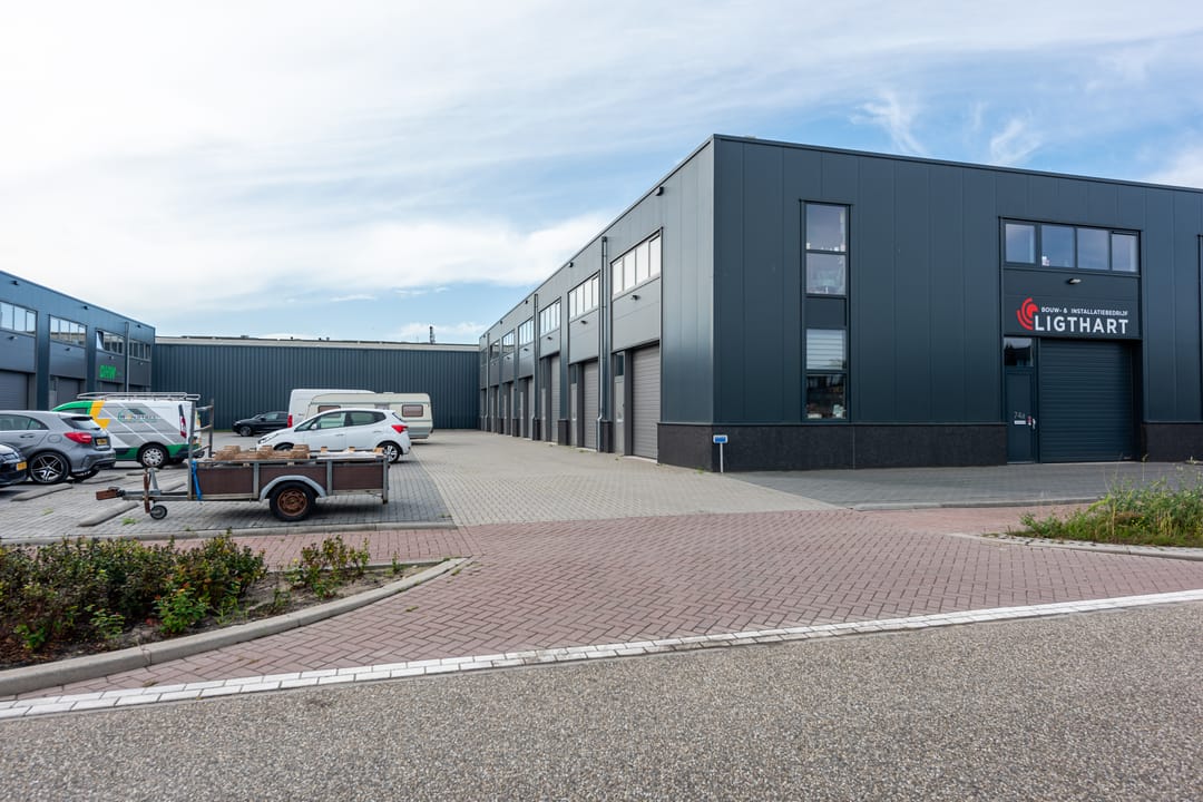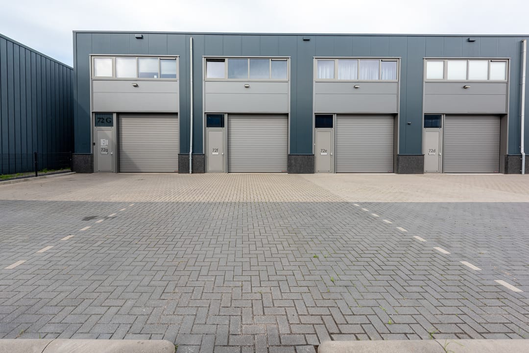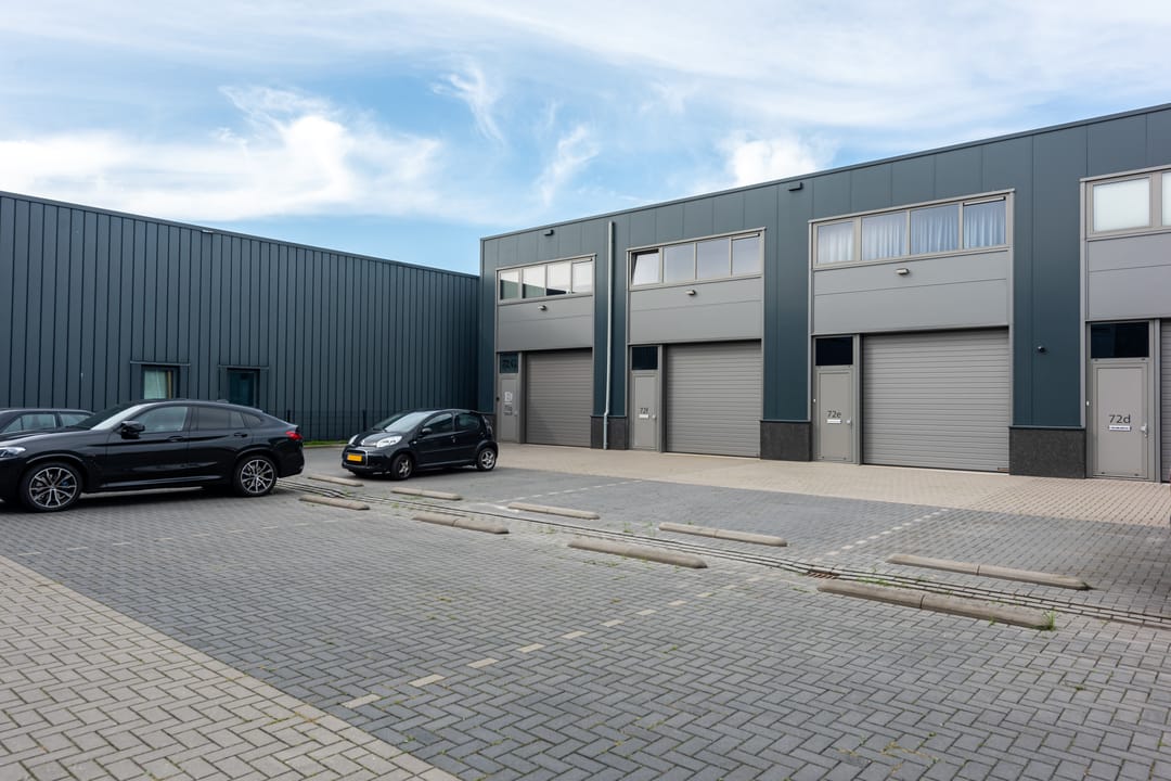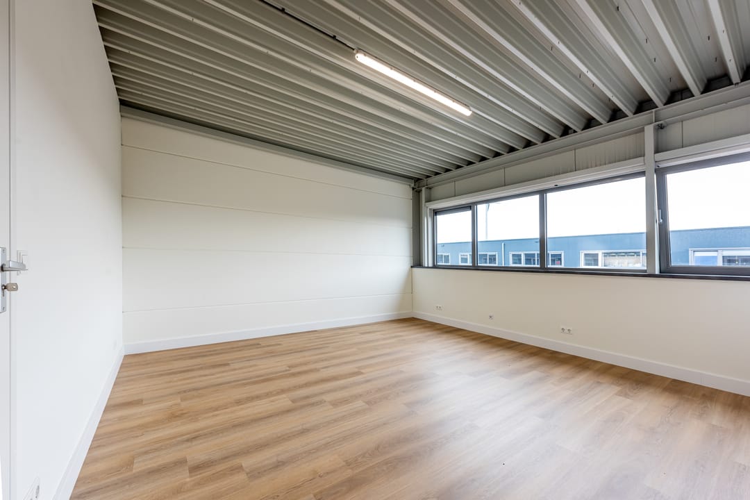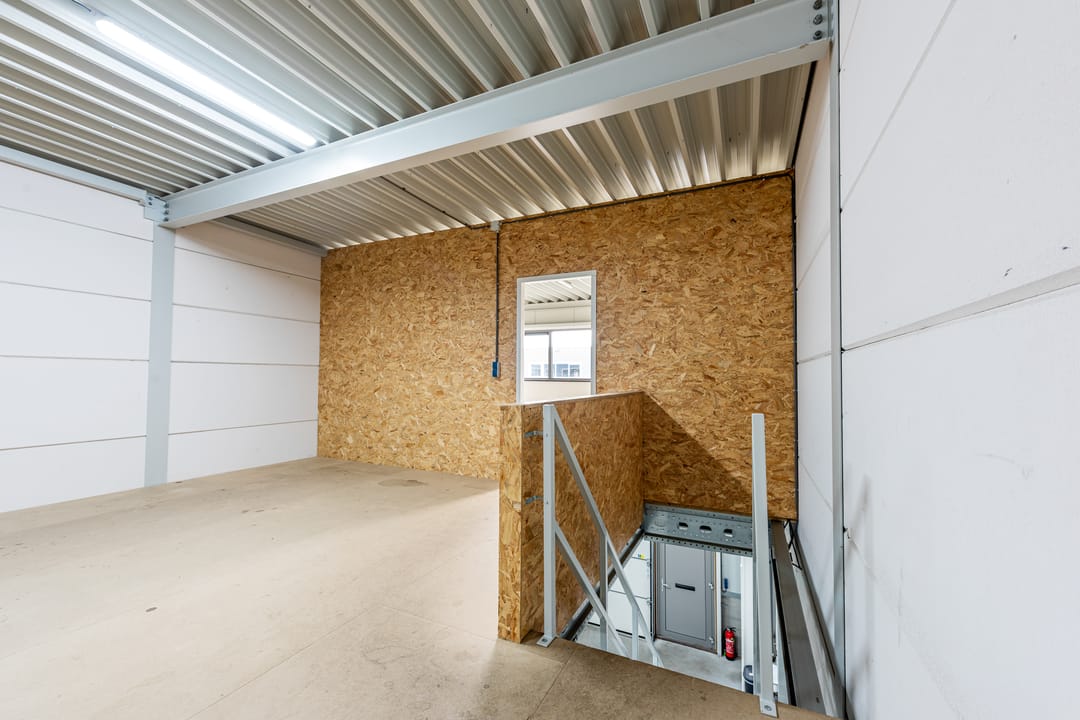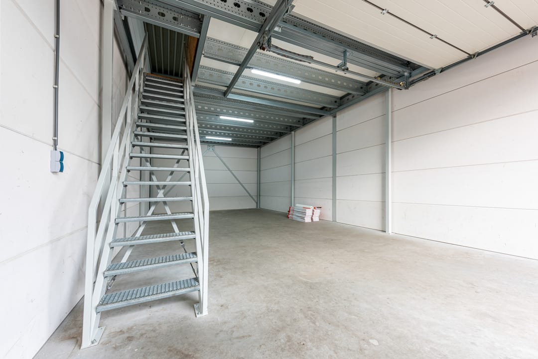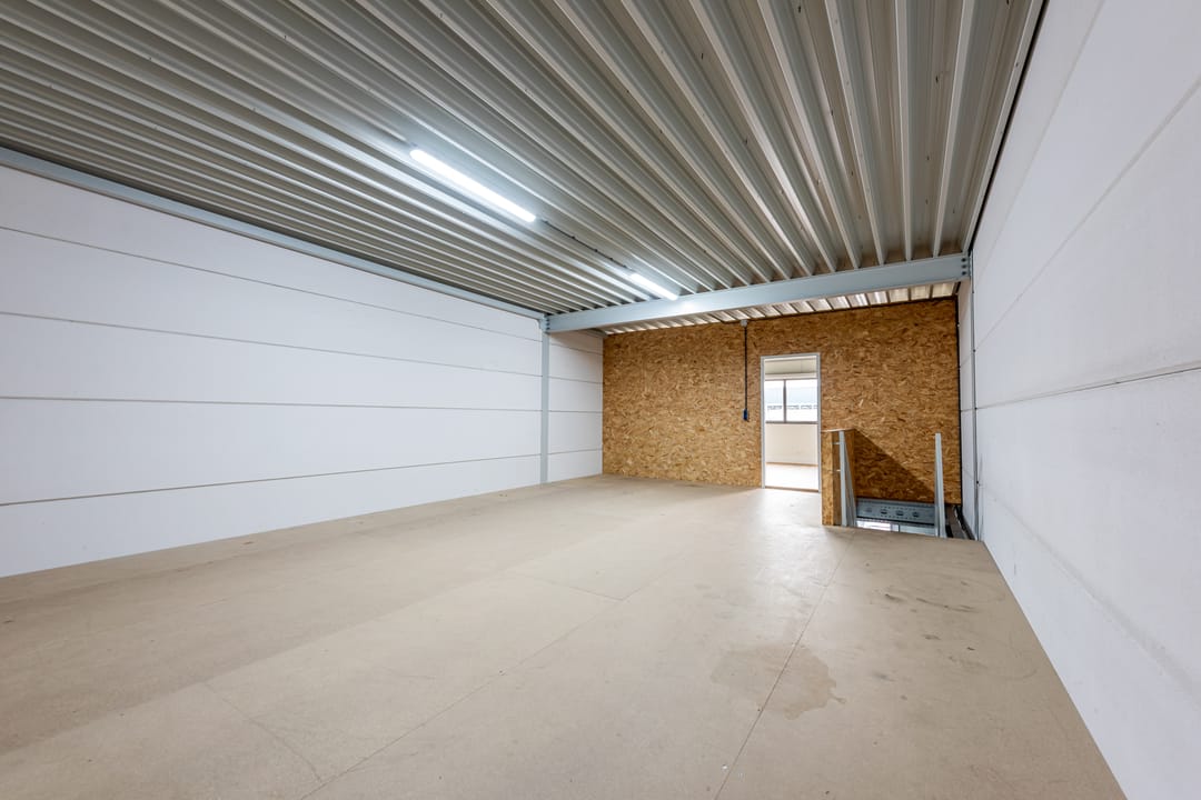 Moderne en praktische bedrijfsruimte met verdiepingsvloer, kantoor, pantry en elektrische roldeur. Gelegen op een goed bereikbare locatie en voorzien van twee eigen parkeerplaatsen voor de deur.