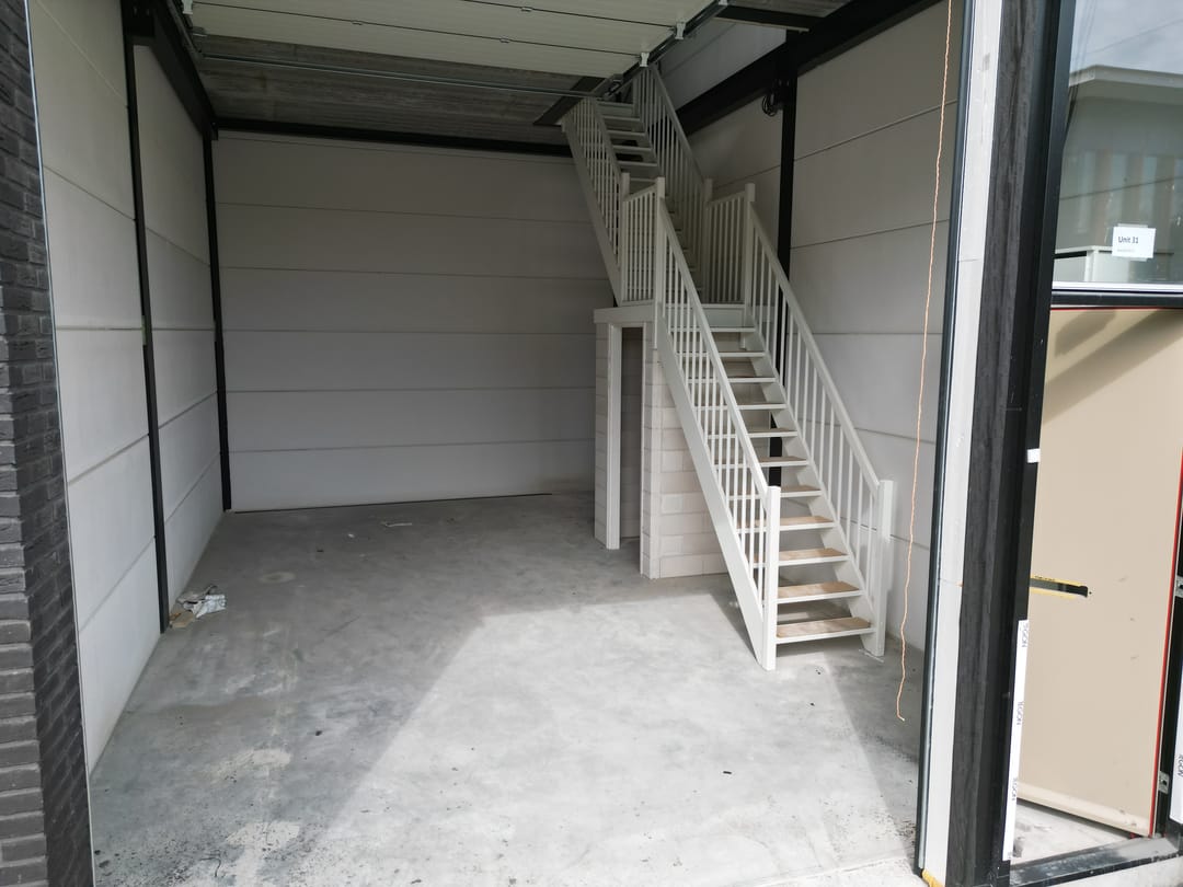 De aangeboden unit wordt opgeleverd met een functionele bedrijfsruimte op de begane grond net een vrije hoogte van maar liefst 4,65 meter en een afgewerkte betonnen verdiepingsvloer met veel daglichttoetreding. De verdieping is geschikt om eventueel als kantoor af te bouwen.