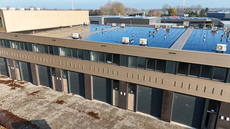 - geïsoleerd staaldak (Rc-6,3) voorzien van PVC dakbedekking en twee dak doorvoeren;