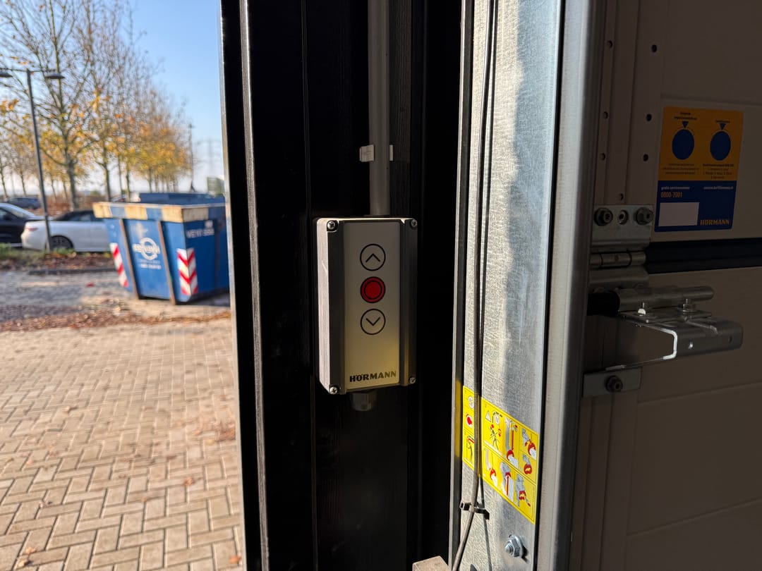 - elektrisch bedienbare overheaddeur, ca. 3,00 meter breed en ca. 4,00 meter hoog met aanrijdbeveiliging;