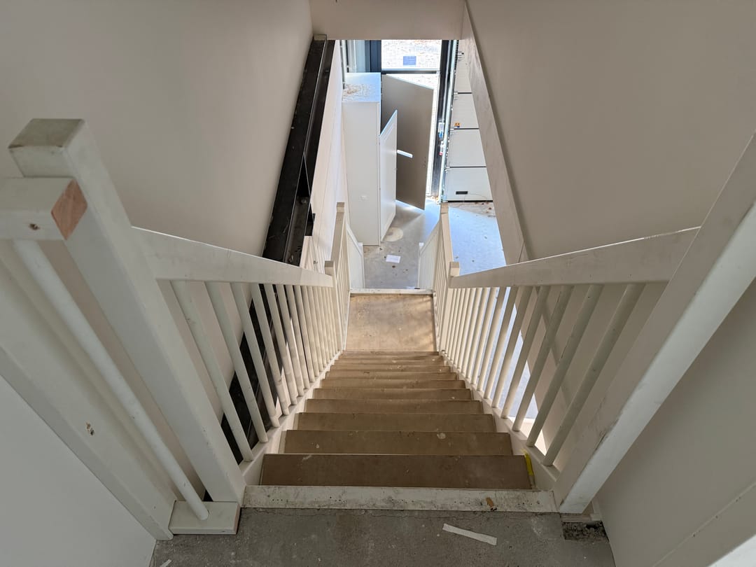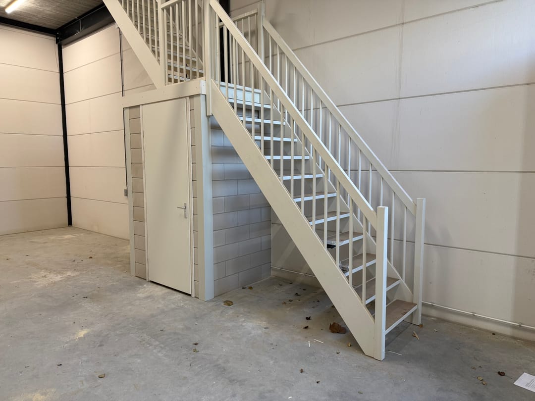 - bovenaan de trap een wand rondom het tapgat met kozijn en deur;