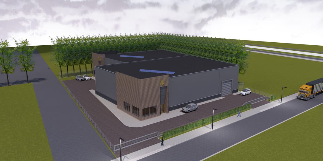 Nieuw duurzaam te realiseren bedrijfsgebouw met een totaal oppervlak van ca. 1.660m² waarin 2 zelfstandig