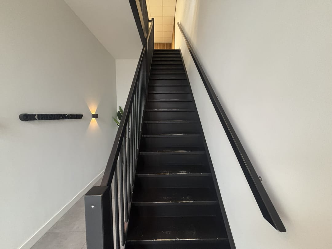 Op de eerste verdieping bevindt zich een moderne kantoorruimte van circa 90 m², voorzien van alle hedendaagse gemakken. Aan de voorzijde zijn vier eigen parkeerplaatsen aanwezig en naast het pand bevindt zich een verhard buitenterrein van circa 30 m² (3 x 10 m), ideaal voor opslag of stalling.