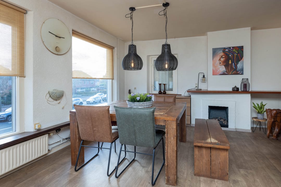 De bovenwoning is bereikbaar via twee zij-entrees, beide met berging en trapopgang. De eerste verdieping vormt een royale woonlaag, die voorheen bestond uit twee zelfstandige bovenwoningen.