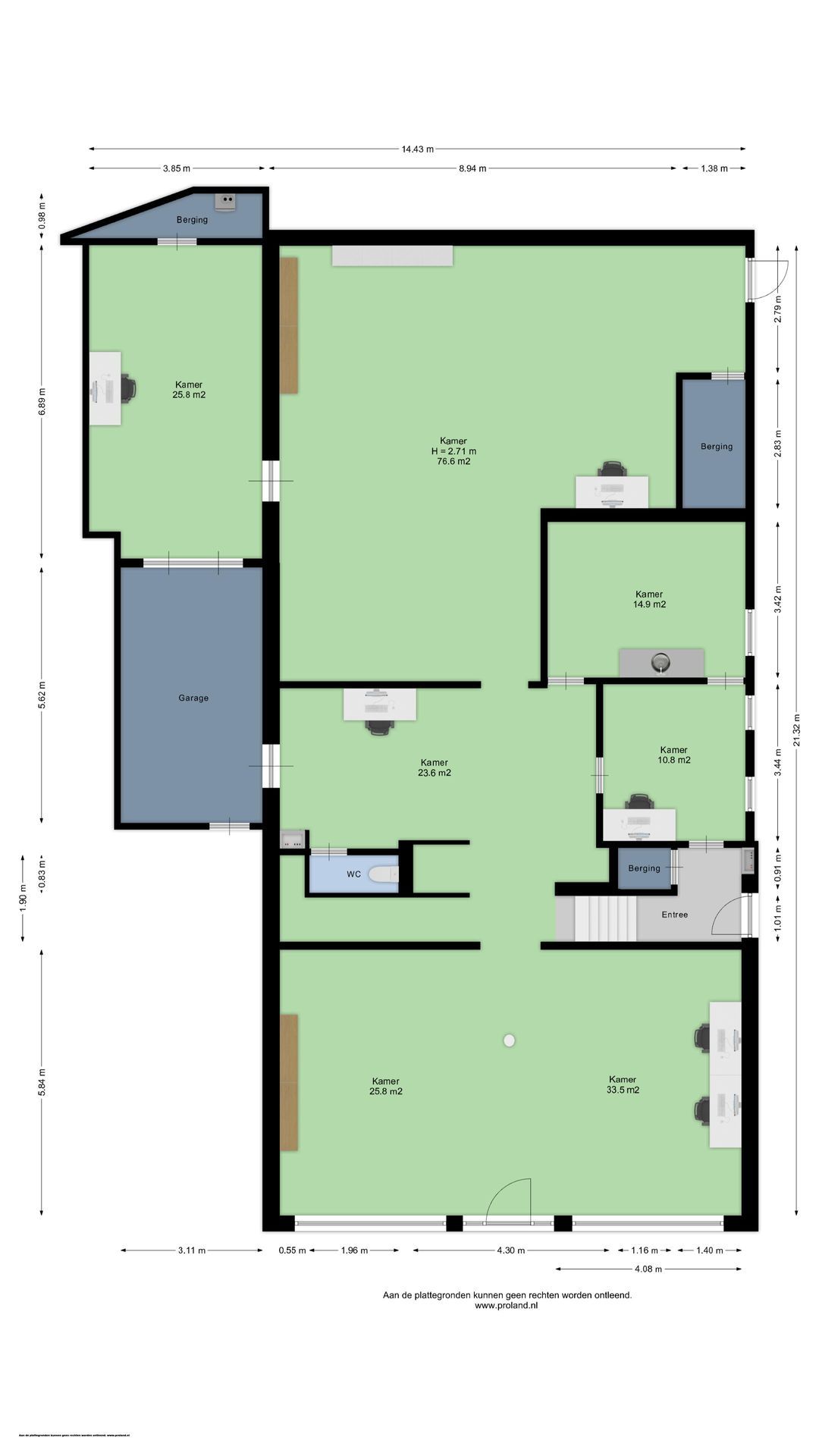 - Drie multifunctionele kantoor-/werkruimtes