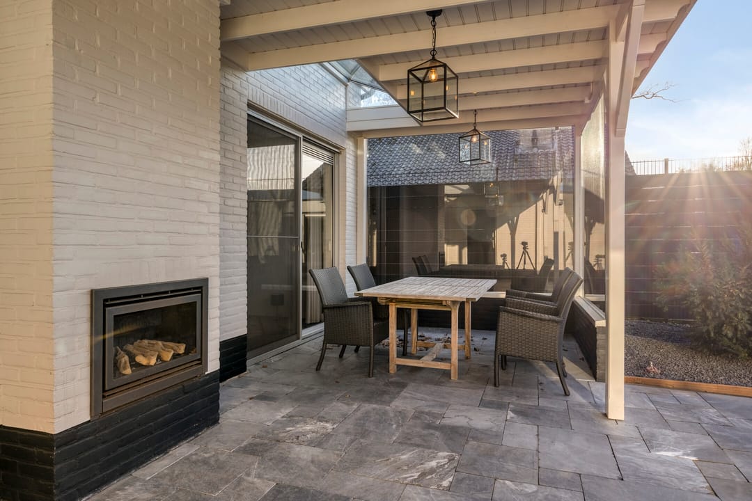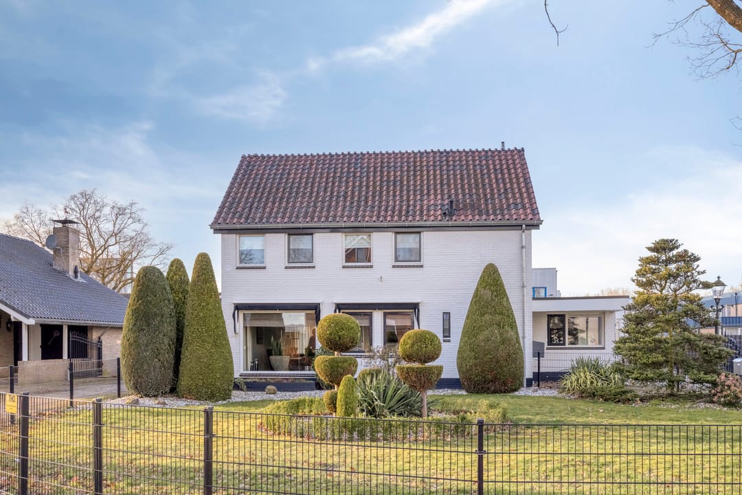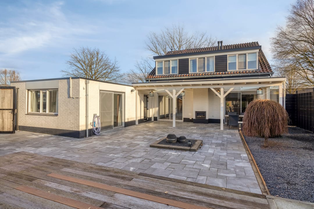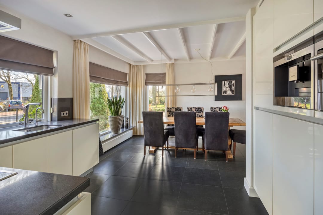 De ruim opgezette bedrijfswoning heeft een totale oppervlakte van circa 200 m² en kenmerkt zich door een luxe en moderne uitstraling. De woning is in 2007 verbouwd. Bij binnenkomst ervaart u direct de ruime opzet en de prettige lichtinval in de ruime hal, die ook toegang biedt tot de trap naar de eerste verdieping, het separate toilet, de woonkeuken en de bijkeuken. Zowel de hal als de keuken zijn voorzien van vloerverwarming. Vanuit de keuken bereikt u de woonkamer, vanwaar u een fraai uitzicht heeft op de keurig onderhouden tuin. De tuin beschikt over een in 2007 gerealiseerde overkapping met gashaard. Via de schuifdeur heeft u direct toegang tot buiten. De royale woonkamer is voorzien van een parketvloer en een sfeervolle gashaard. De woonkeuken is praktisch en hoogwaardig uitgevoerd, met een breed granieten werkblad en veel kastruimte. De keuken is uitgerust met Siemens-inbouwapparatuur, waaronder een inductiekookplaat, combimagnetron, vaatwasser en koelkast. De bijkeuken beschikt over inbouwkasten en een extra koelkast. Bijzonder is dat de bedrijfswoning beschikt over een slaapkamer op de begane grond, met de mogelijkheid om hier tevens een badkamer te realiseren. Via de vaste trap bereikt u de overloop op de eerste verdieping. Hier bevinden zich nog vier slaapkamers, alle voorzien van airconditioning voor zowel verwarmen als koelen. Dankzij de dakkapel (2007) aan de achterzijde beschikken de kamers over veel daglicht. De centraal gelegen badkamer is uitgerust met een toilet, douche en dubbele wastafel. De zolder is bereikbaar via een vlizotrap.