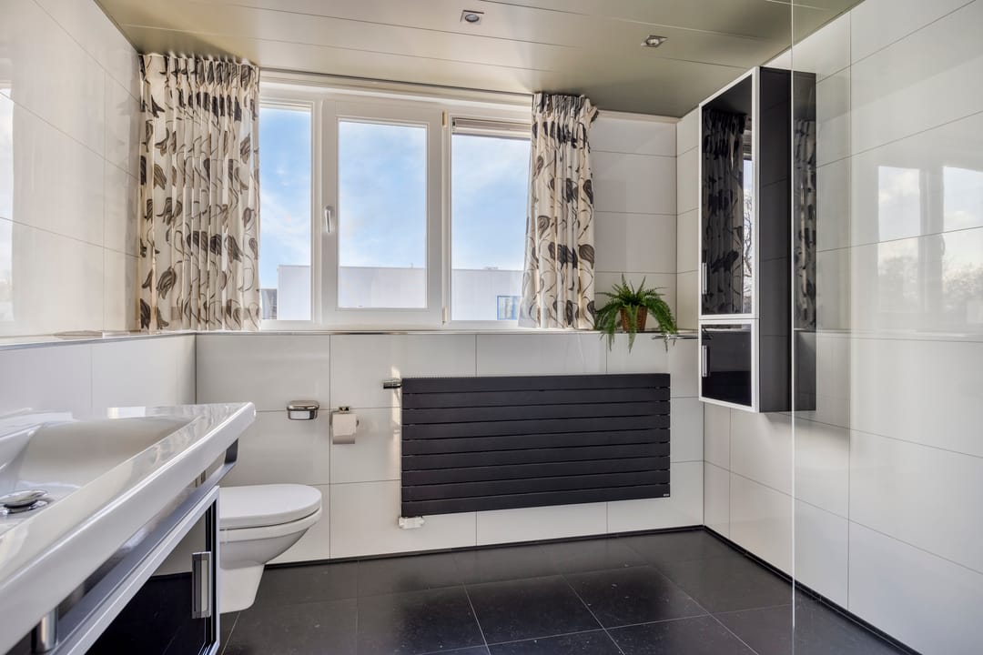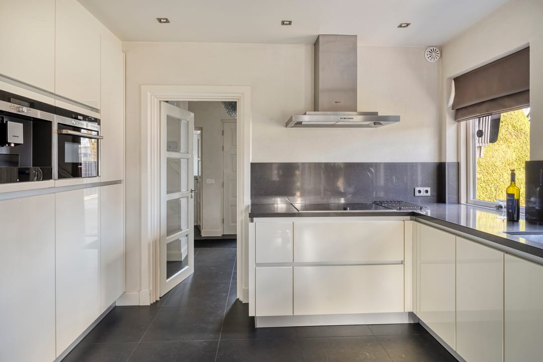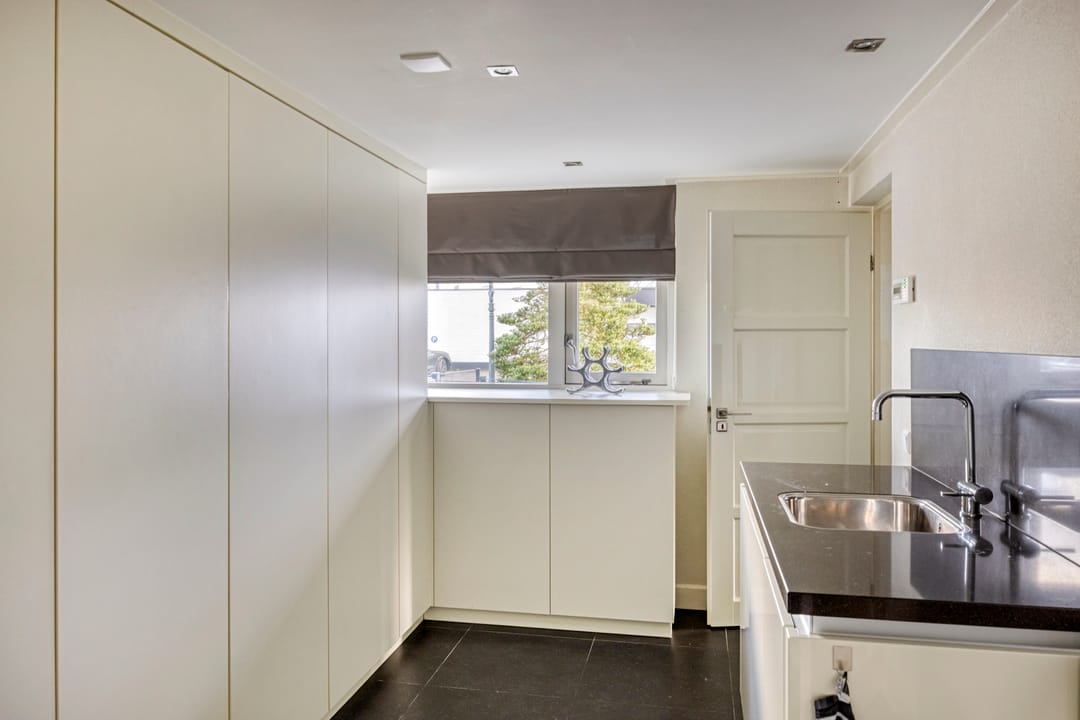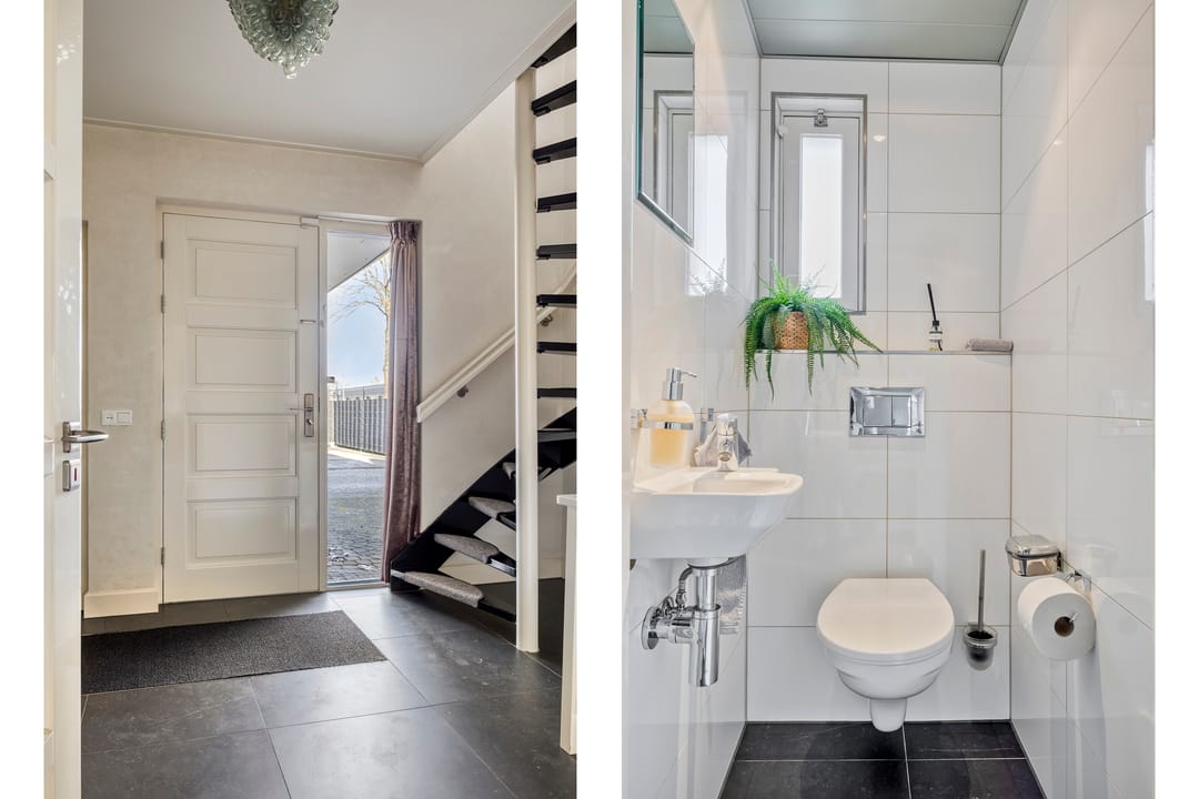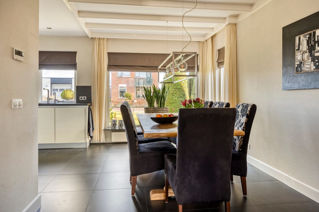 De ruim opgezette bedrijfswoning heeft een totale oppervlakte van circa 200 m² en kenmerkt zich door een luxe en moderne uitstraling. De woning is in 2007 verbouwd. Bij binnenkomst ervaart u direct de ruime opzet en de prettige lichtinval in de ruime hal, die ook toegang biedt tot de trap naar de eerste verdieping, het separate toilet, de woonkeuken en de bijkeuken. Zowel de hal als de keuken zijn voorzien van vloerverwarming. Vanuit de keuken bereikt u de woonkamer, vanwaar u een fraai uitzicht heeft op de keurig onderhouden tuin. De tuin beschikt over een in 2007 gerealiseerde overkapping met gashaard. Via de schuifdeur heeft u direct toegang tot buiten. De royale woonkamer is voorzien van een parketvloer en een sfeervolle gashaard. De woonkeuken is praktisch en hoogwaardig uitgevoerd, met een breed granieten werkblad en veel kastruimte. De keuken is uitgerust met Siemens-inbouwapparatuur, waaronder een inductiekookplaat, combimagnetron, vaatwasser en koelkast. De bijkeuken beschikt over inbouwkasten en een extra koelkast. Bijzonder is dat de bedrijfswoning beschikt over een slaapkamer op de begane grond, met de mogelijkheid om hier tevens een badkamer te realiseren. Via de vaste trap bereikt u de overloop op de eerste verdieping. Hier bevinden zich nog vier slaapkamers, alle voorzien van airconditioning voor zowel verwarmen als koelen. Dankzij de dakkapel (2007) aan de achterzijde beschikken de kamers over veel daglicht. De centraal gelegen badkamer is uitgerust met een toilet, douche en dubbele wastafel. De zolder is bereikbaar via een vlizotrap.