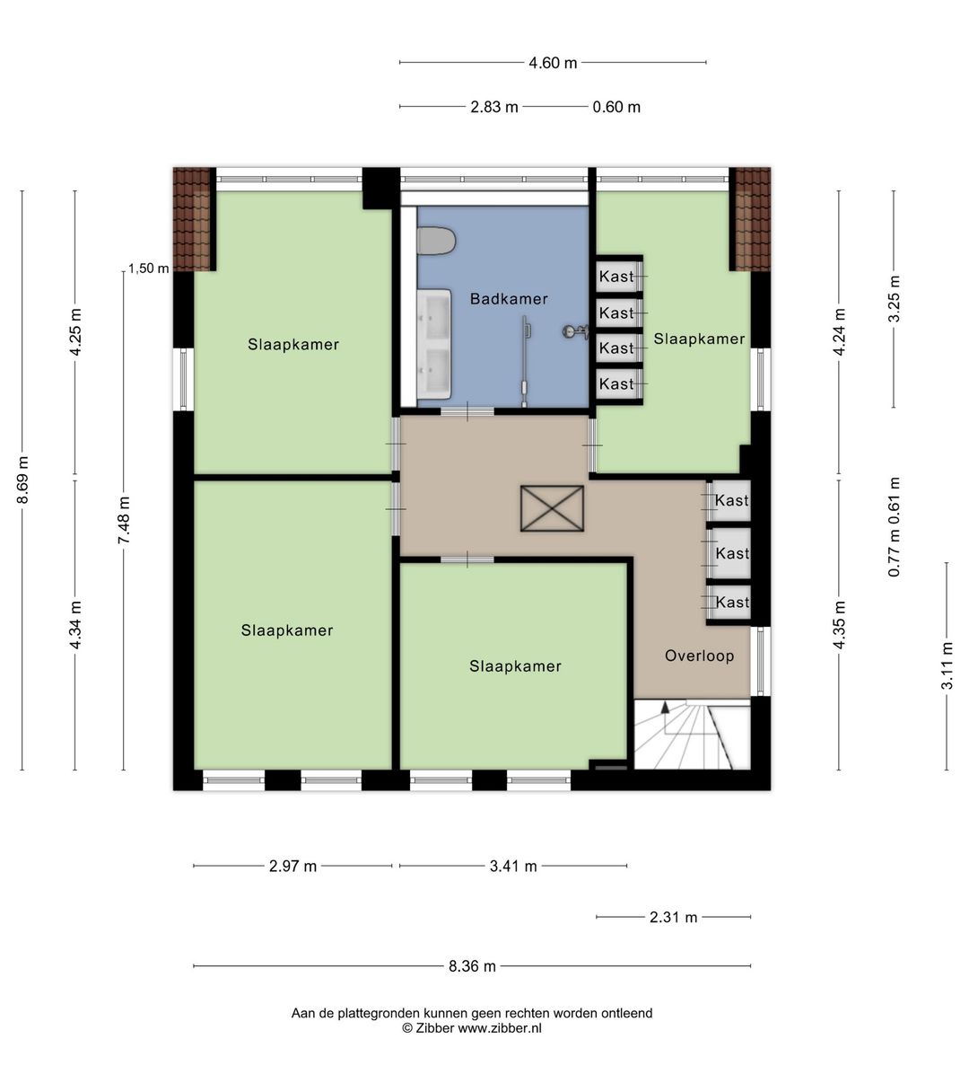 Het vloeroppervlak is gemeten door de verkopend makelaar op basis van een kopie van de bouwtekening. De opgegeven metrages zijn indicatief. Hieraan kunnen geen rechten worden ontleend en er kan geen verrekening achteraf plaatsvinden.