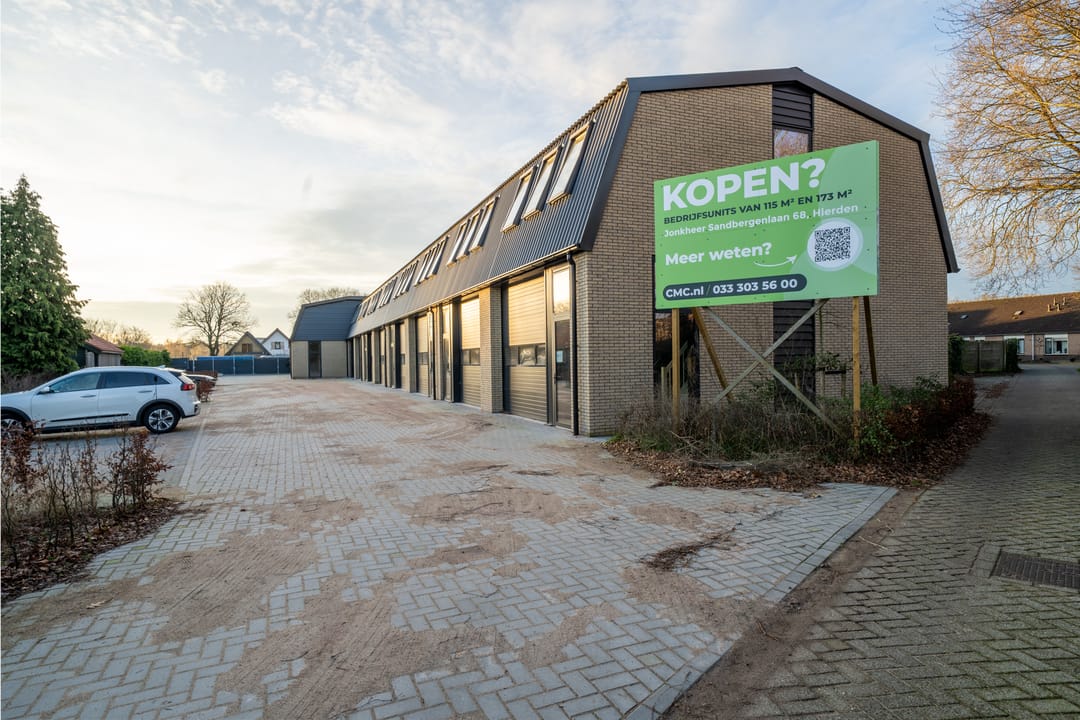 In een recent gebouwd kleinschalig bedrijfsverzamelgebouw in Hierden bieden wij een bedrijfsunit te huur aan van ca. 173 m² BVO. Het bedrijfsverzamelgebouw heeft een mooie authentieke uitstraling wat goed aansluit bij de omgeving. De unit is volledig gasloos en goed geïsoleerd. De unit beschikt over een aantal voorzieningen waaronder een elektrisch bedienbare overheaddeur en separate loopdeur, een betonvloer op de begane grond, een cement dekvloer op de eerste verdieping en drie ramen met HR++ glas op de eerste verdieping.