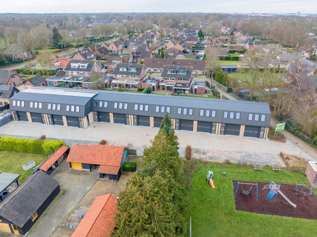 In een recent gebouwd kleinschalig bedrijfsverzamelgebouw in Hierden bieden wij drie bedrijfsunits te huur aan van ca. 115 m² BVO. Het bedrijfsverzamelgebouw heeft een mooie authentieke uitstraling wat goed aansluit bij de omgeving. De units zijn volledig gasloos en goed geïsoleerd. De units beschikken over een aantal voorzieningen waaronder een elektrisch bedienbare overheaddeur en separate loopdeur, een betonvloer op de begane grond, een cement dekvloer op de eerste verdieping en drie ramen met HR++ glas op de eerste verdieping.