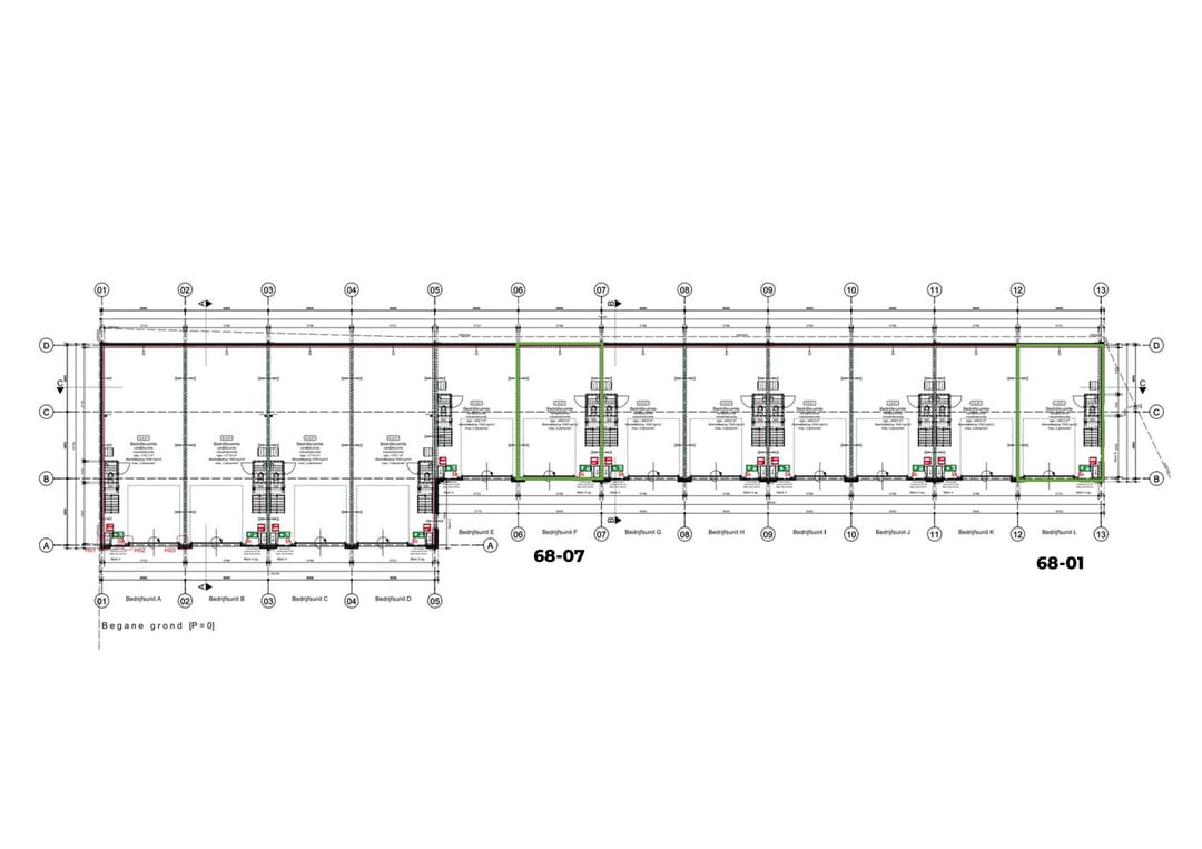 De bedrijfsunits worden casco opgeleverd doch voorzien van: