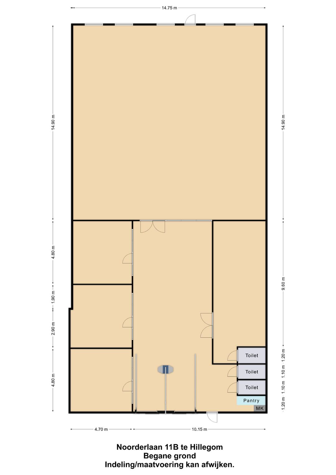 De bedrijfsruimte is o.a. voorzien van dubbele toiletgroep, pantry, heater, verlichting.