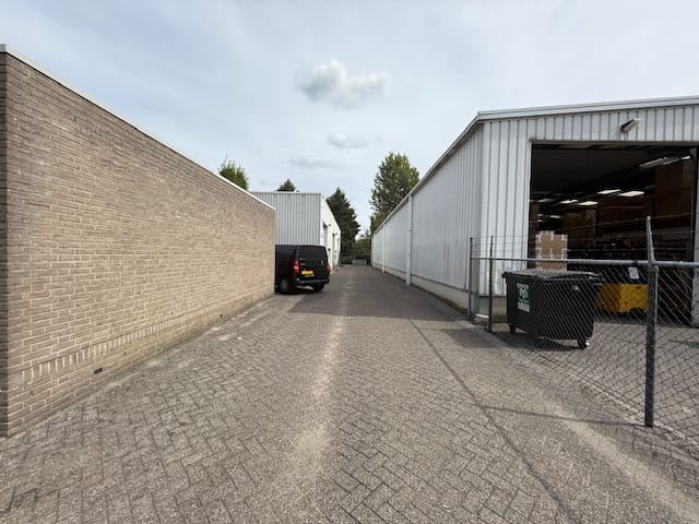 De bedrijfshal heeft een hoogte van circa 4,5 meter. De bedrijfsruimte is voorzien van een overheaddeur, verwarming en krachtstroom. De bedrijfshal is vanuit de werkruimte op de begane grond bereikbaar en via een entresol vanuit de kantoorruimte op de verdieping. Aan de achterzijde van de bedrijfshal is een buitenterrein gelegen ten behoeve van manoeuvreerruimte bij de overheaddeur en eventueel extra parkeerruimte.