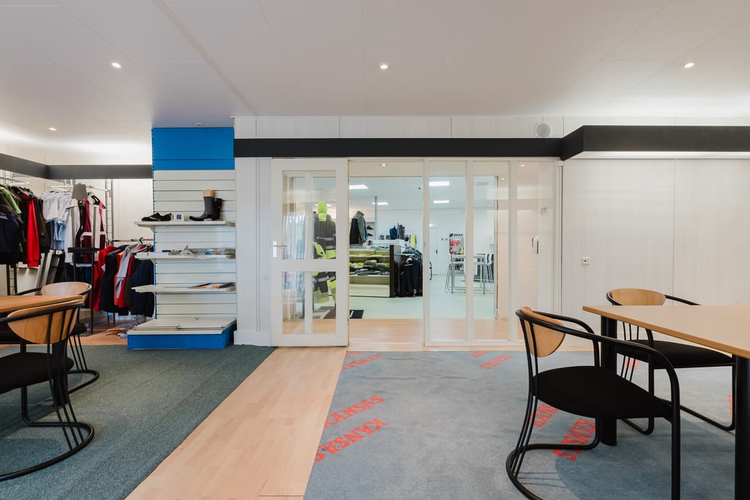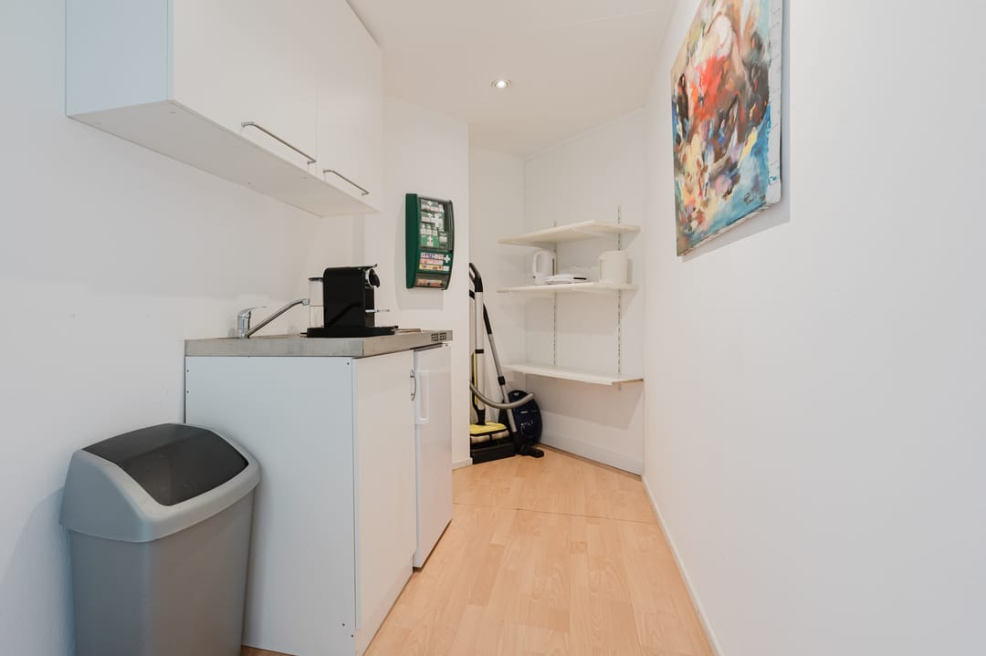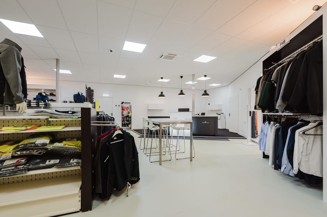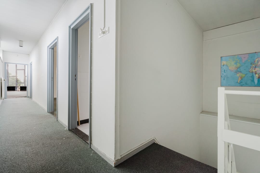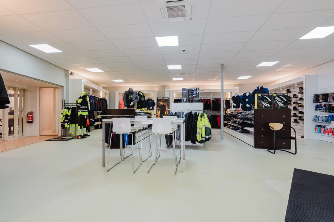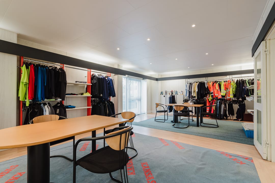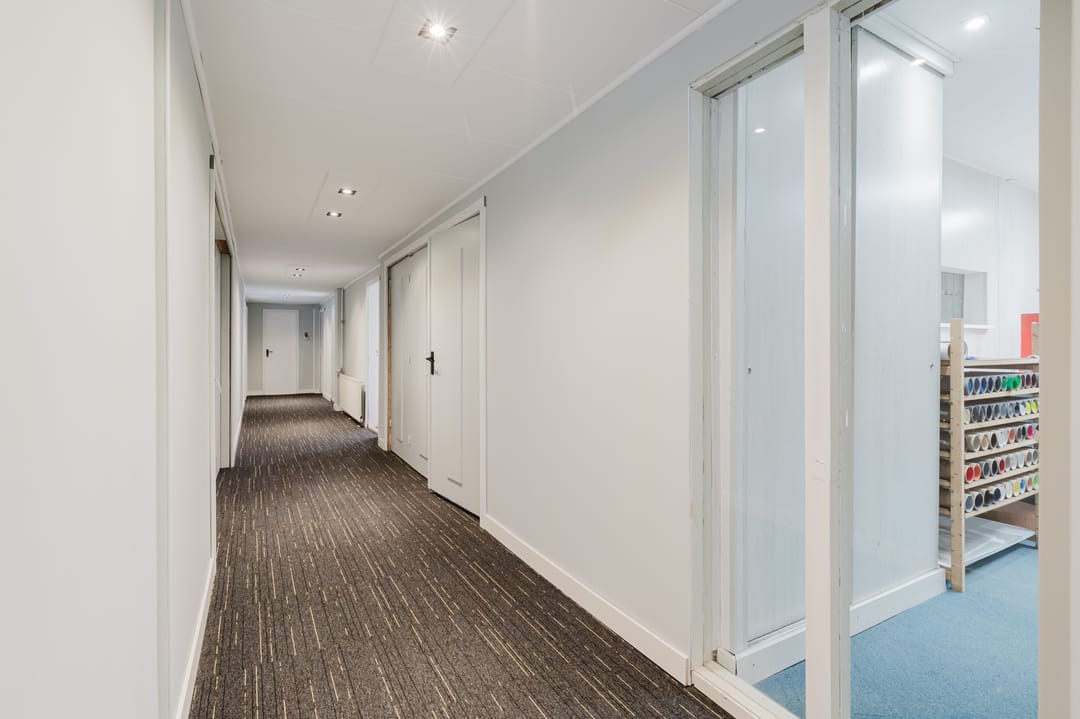 Op de begane grond bevindt zich een representatieve showroom van circa 110 m², ideaal voor productpresentatie of klantontvangst. Aansluitend ligt het magazijn van circa 265 m², voorzien van een overheaddeur. Het magazijn heeft een vrije hoogte van circa 3,8 meter en een doorrijhoogte van 1,9 meter. De eerste verdieping omvat circa 125 m² kantoorruimte, met aansluitend een extra ruimte van circa 93 m² die in het verleden als appartement is gebruikt. Deze ruimte biedt mogelijkheden voor uitbreiding of herindeling, afhankelijk van de behoefte van de gebruiker.