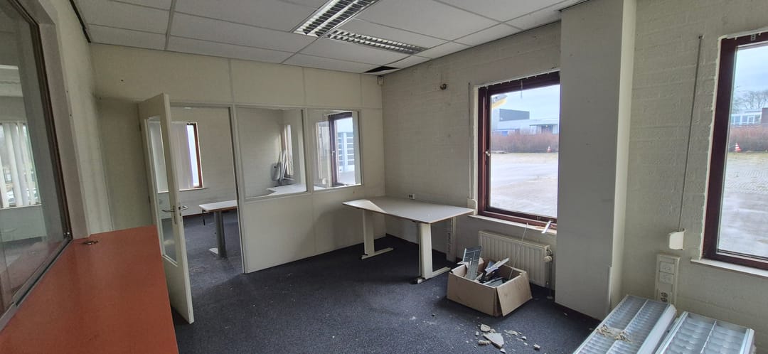 • ca. 100 m² VVO kantoor (verzorgd doch functioneel afwerk- en voorzieningenniveau) => geheel op begane grond gelegen => cellenstructuur (werk- en spreekkamers), kantine (met kitchenette) en toiletfaciliteit