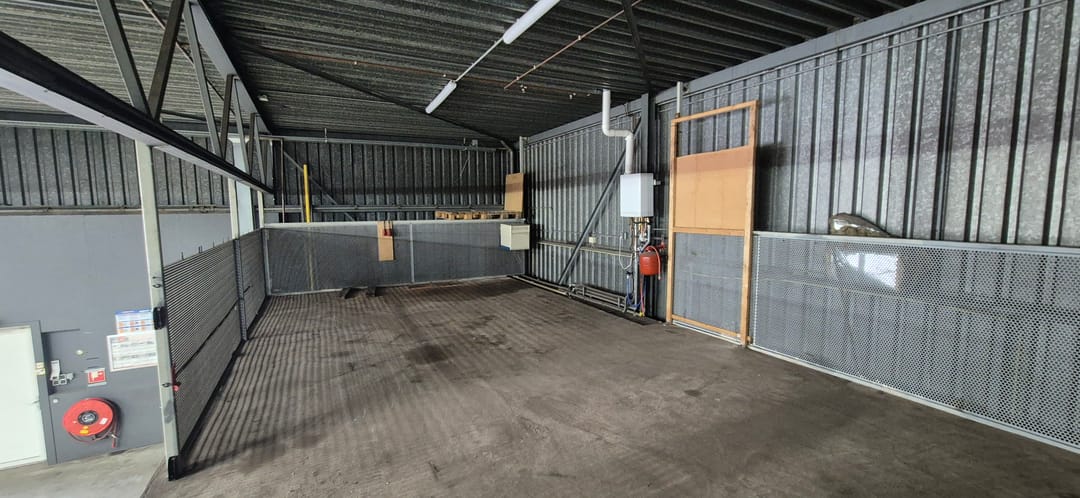 - Rooflights, overhead doors, three-phase electric power, concrete floor, heater, toilet, pantry and windows can be opened
