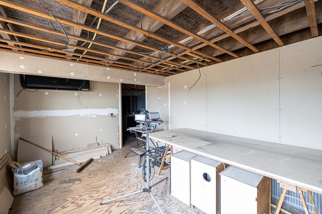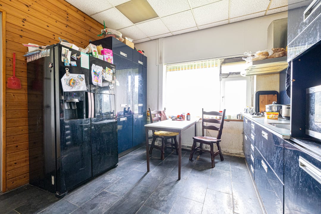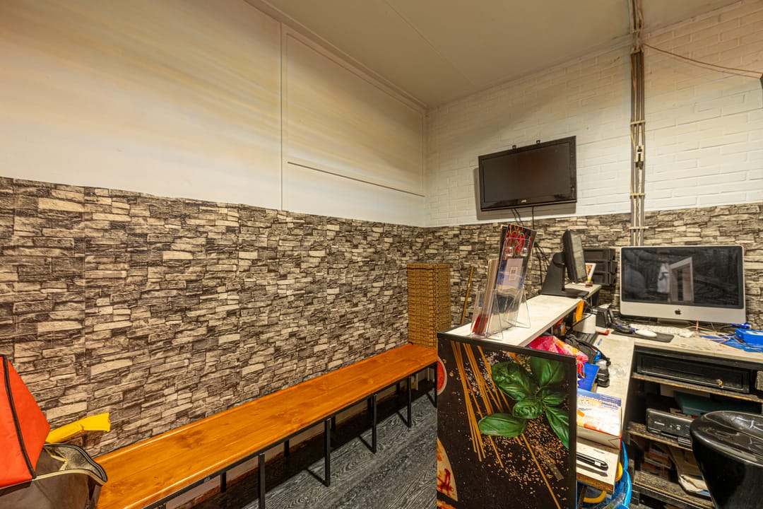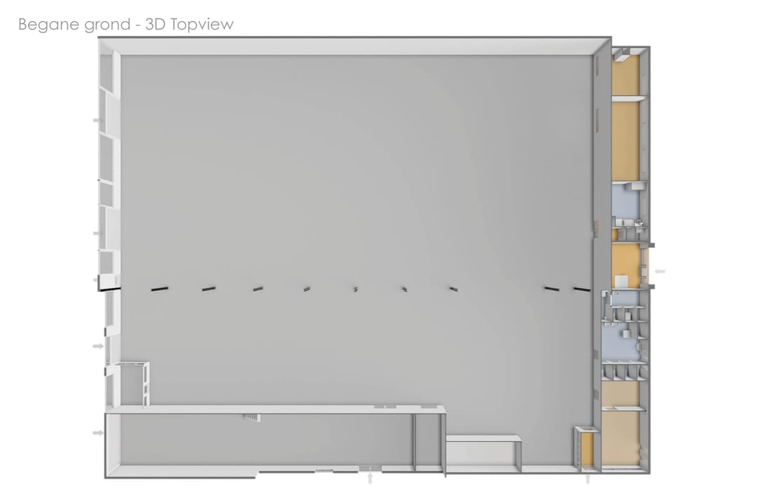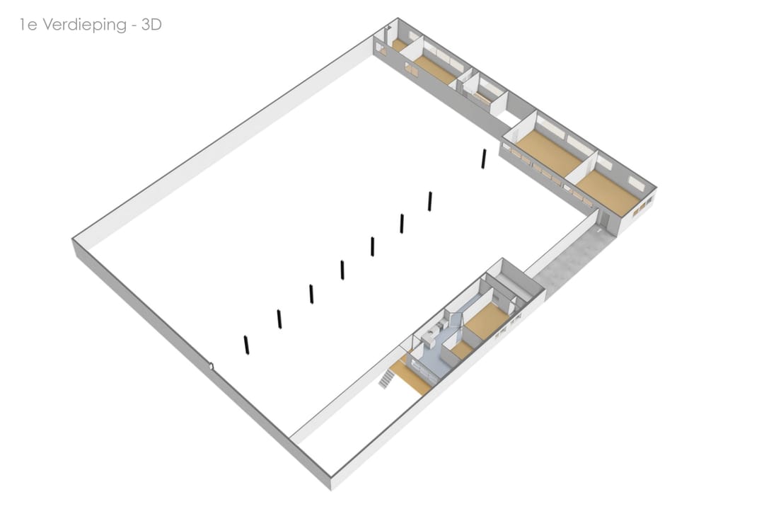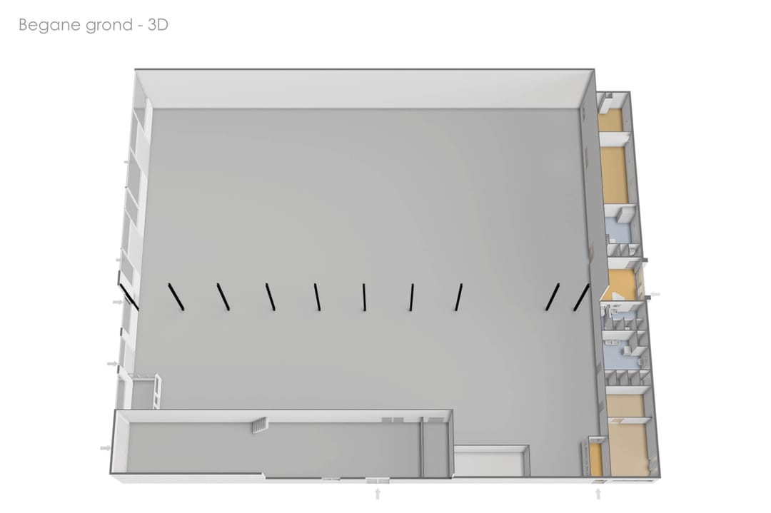 Op de begane grond bevindt zich een royale bedrijfshal met een ruime werkplaats, aangevuld met diverse praktische voorzieningen. Zo zijn er een keuken, sanitair en enkele kantoorruimtes aanwezig, waardoor deze verdieping optimaal functioneert voor zowel productie als ondersteunende werkzaamheden.