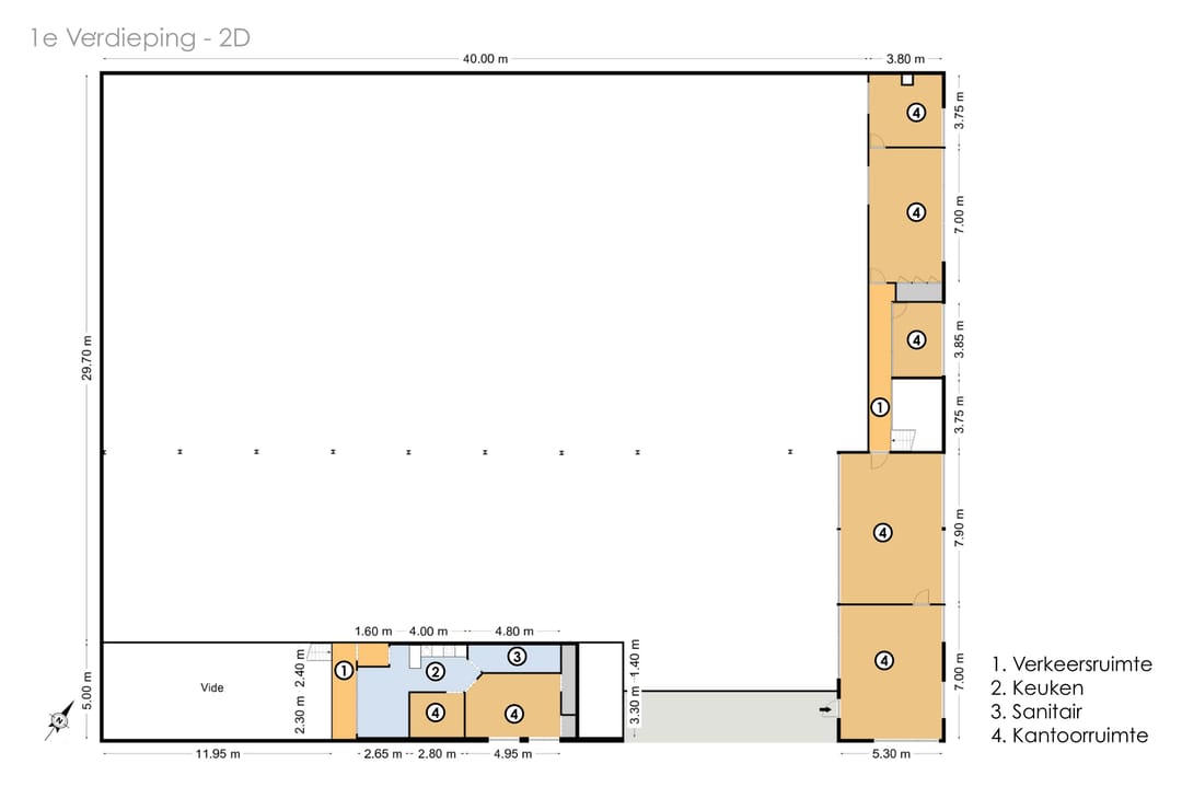 Dankzij de combinatie van een ruime bedrijfshal en goed ingedeelde kantoorruimtes op beide verdiepingen is dit object geschikt voor bedrijven die behoefte hebben aan zowel opslag- en werkruimte als kantoorvoorzieningen.
