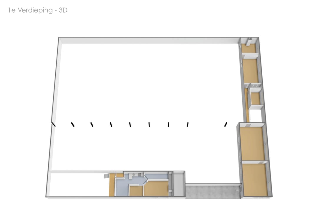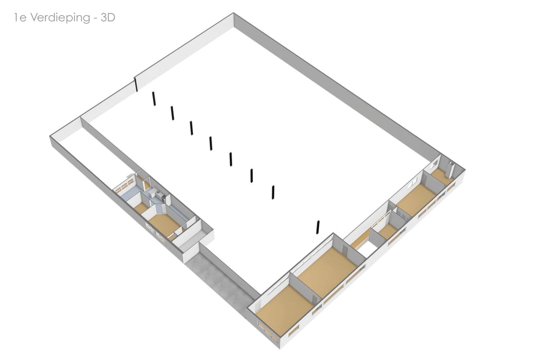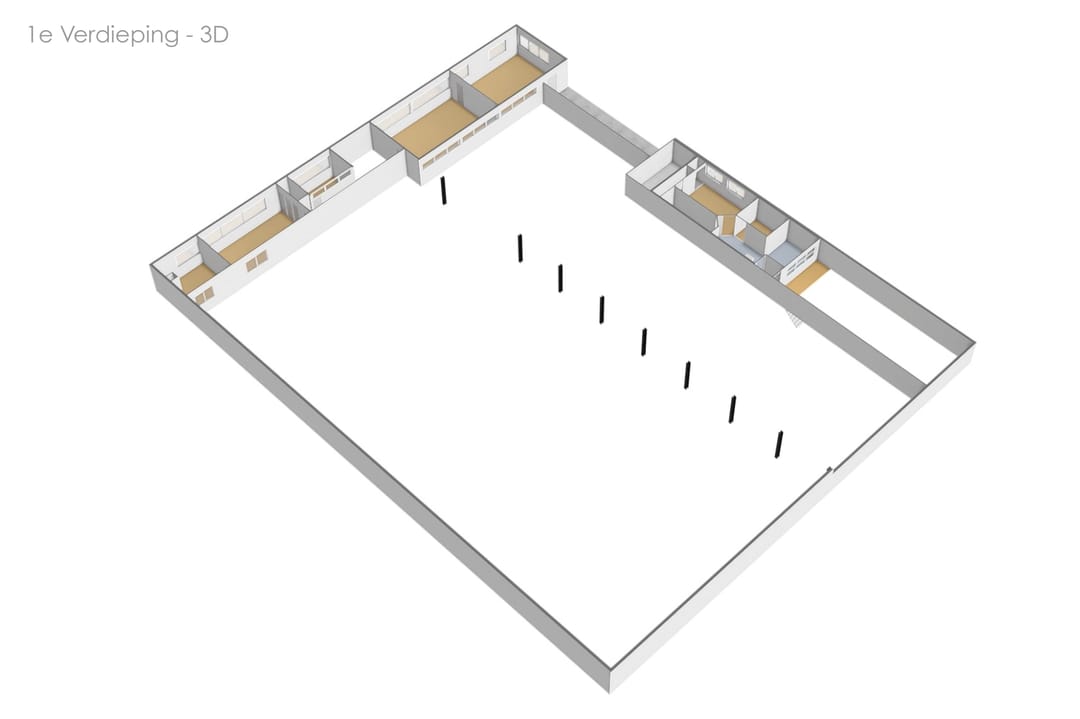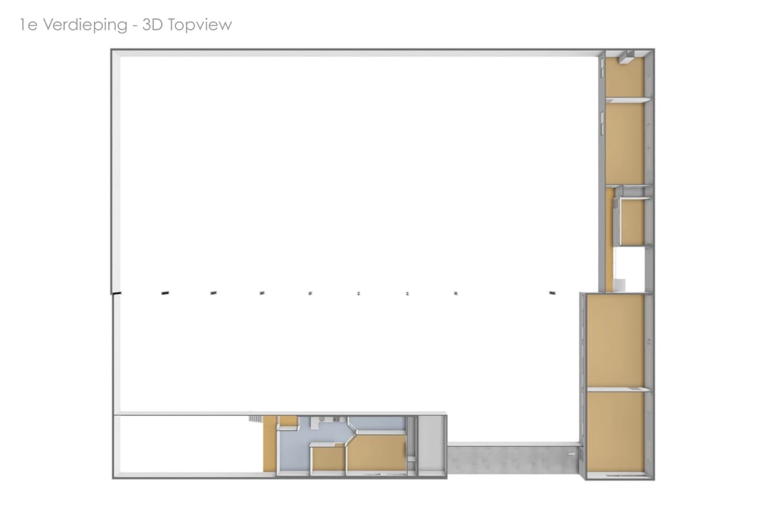 De eerste verdieping beschikt eveneens over een doordachte indeling met meerdere kantoorruimtes. Daarnaast vind je hier een keuken en sanitair, waardoor deze etage uitstekend geschikt is als volwaardige kantooromgeving of ondersteunende werkvloer.