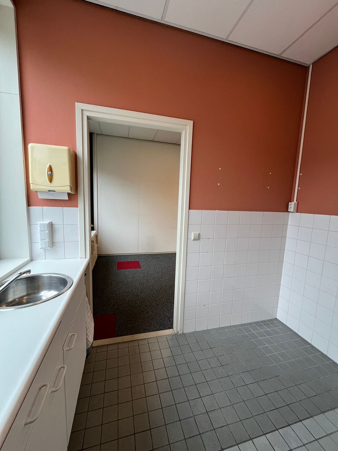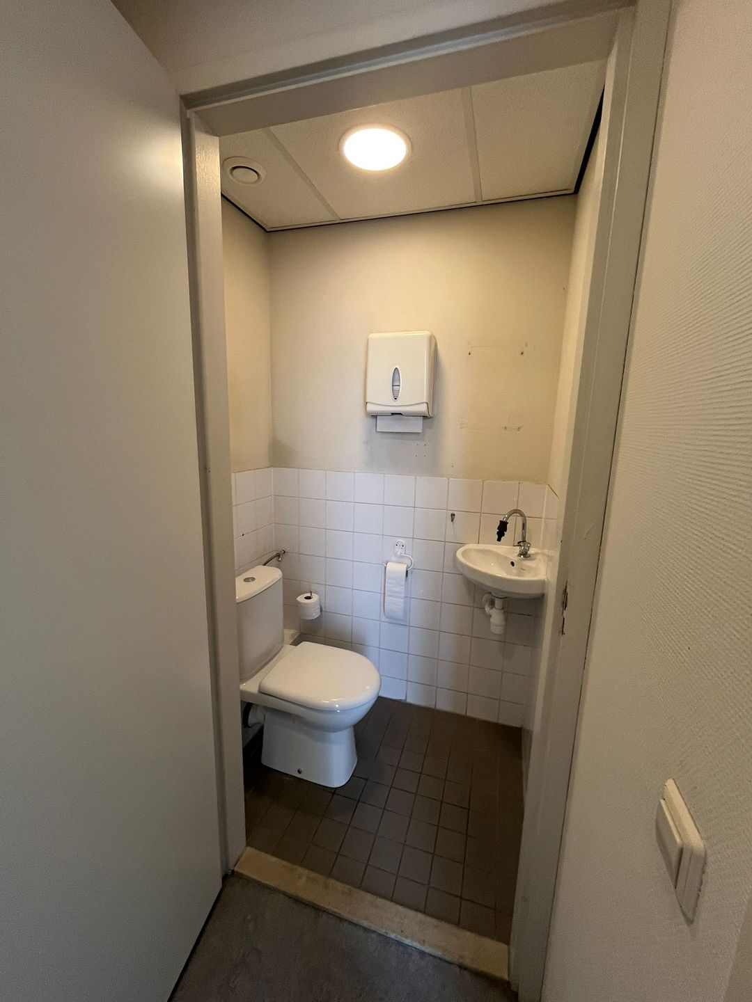 - Verlaagd plafond met verlichtingsarmaturen;