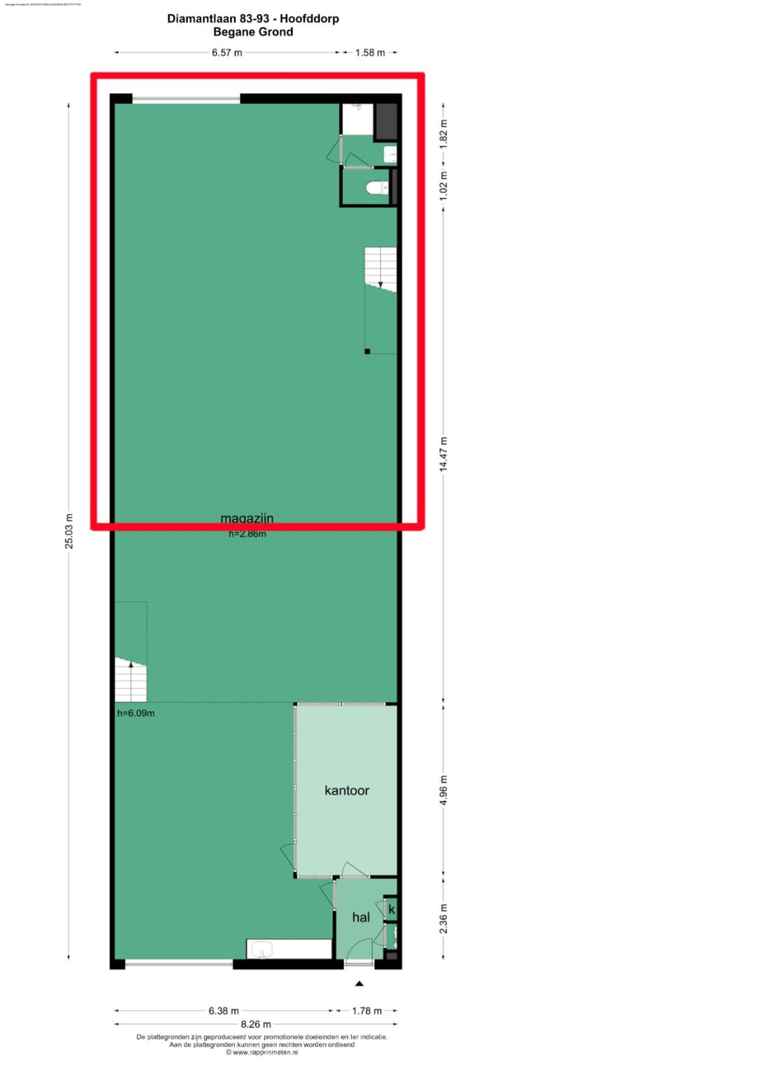 maximaal 374m2 (inclusief Diamantlaan 93) b.v.o (220 m2 bedrijfsruimte en klein kantoor en 154 m2 entresol.