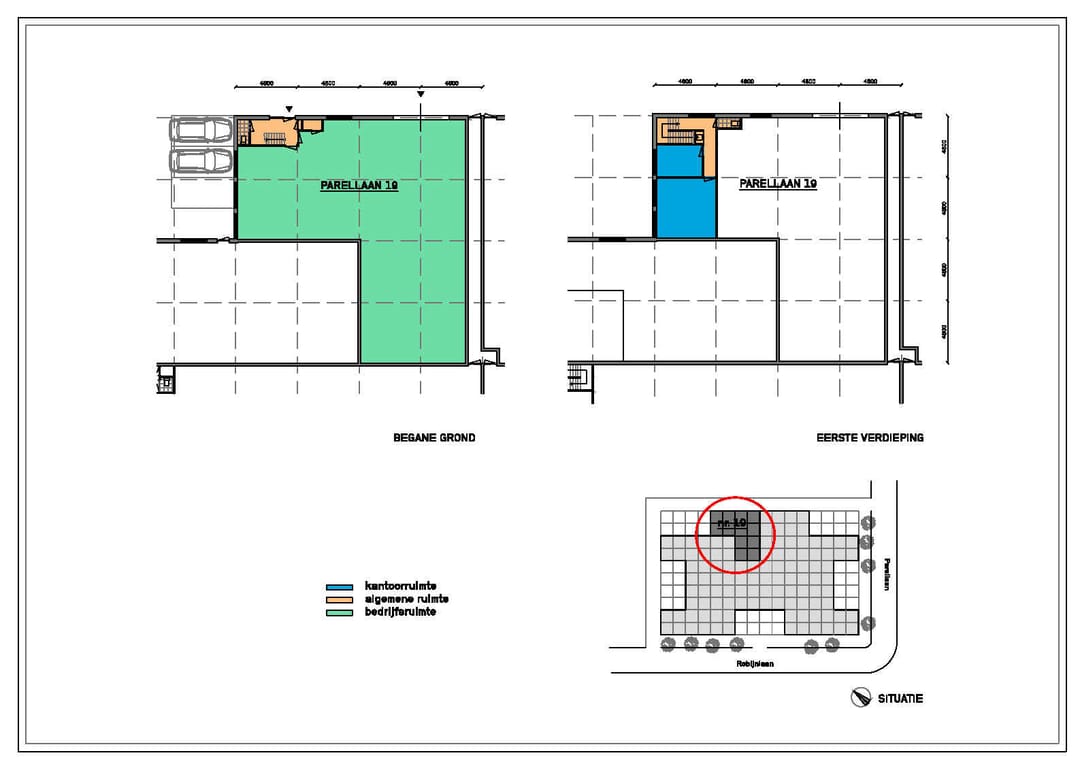 De unit heeft een oppervlakte van ca. 285 m² bedrijfsruimte en ca. 49 m² kantoorruimte en er horen 3 parkeerplaatsen bij op eigen terrein.