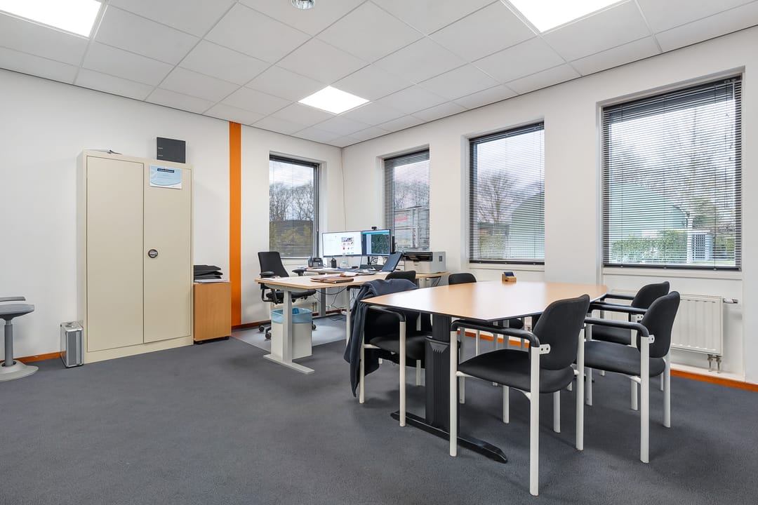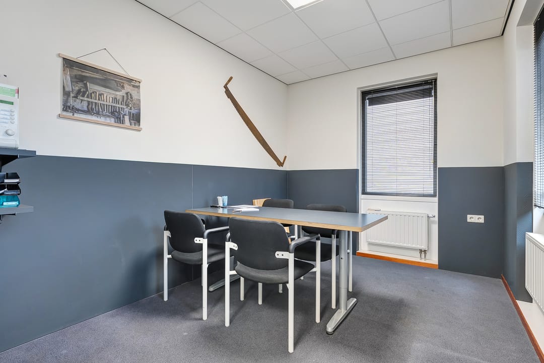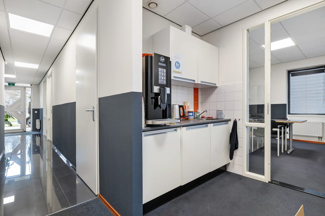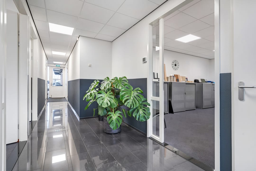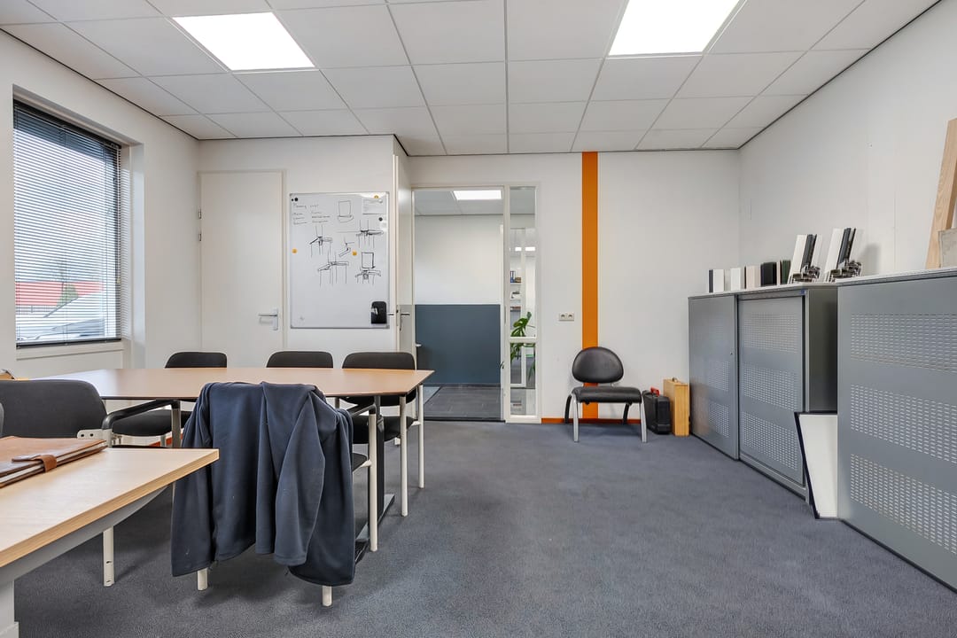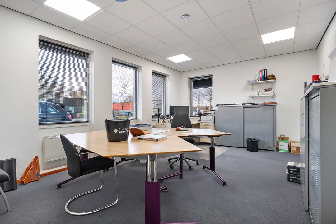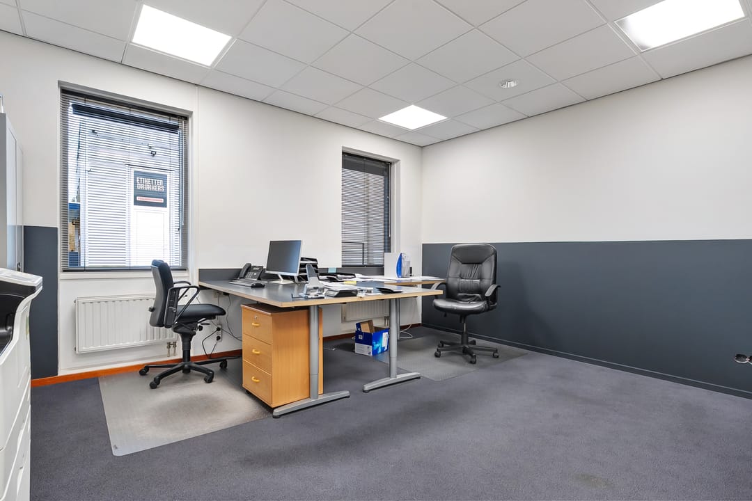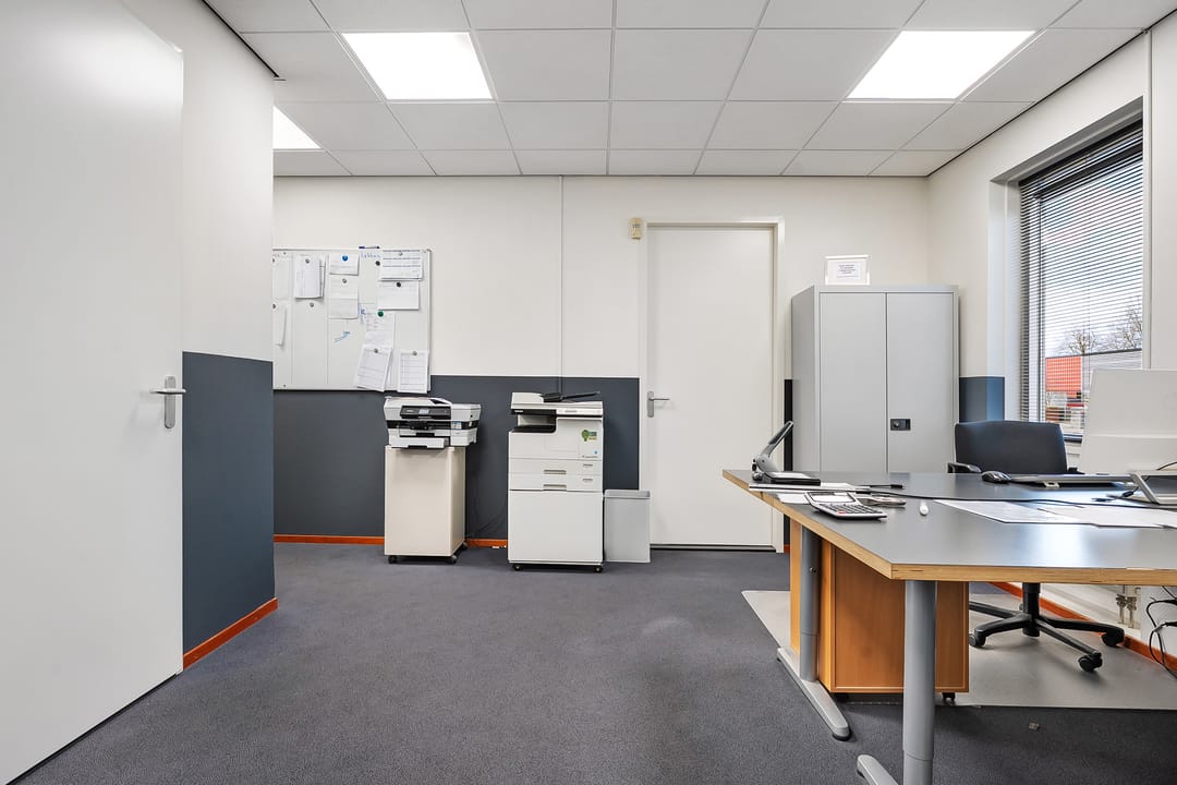 Het bedrijfspand bestaat uit een keurig afgewerkt kantoorpand met 4 kantoren, waarvan 1 met archiefkast, toiletgroep en keukenblok. Voorzien van wand- en vloerafwerking, centrale verwarming en ledverlichting. Het kantoor heeft een energielabel A.