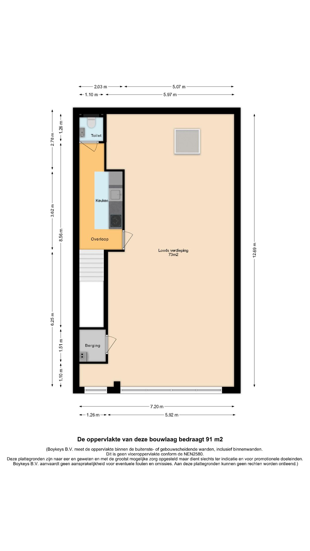 • Plafondhoogte: ca. 7 meter, met verdiepingsvloer op 3,5 meter