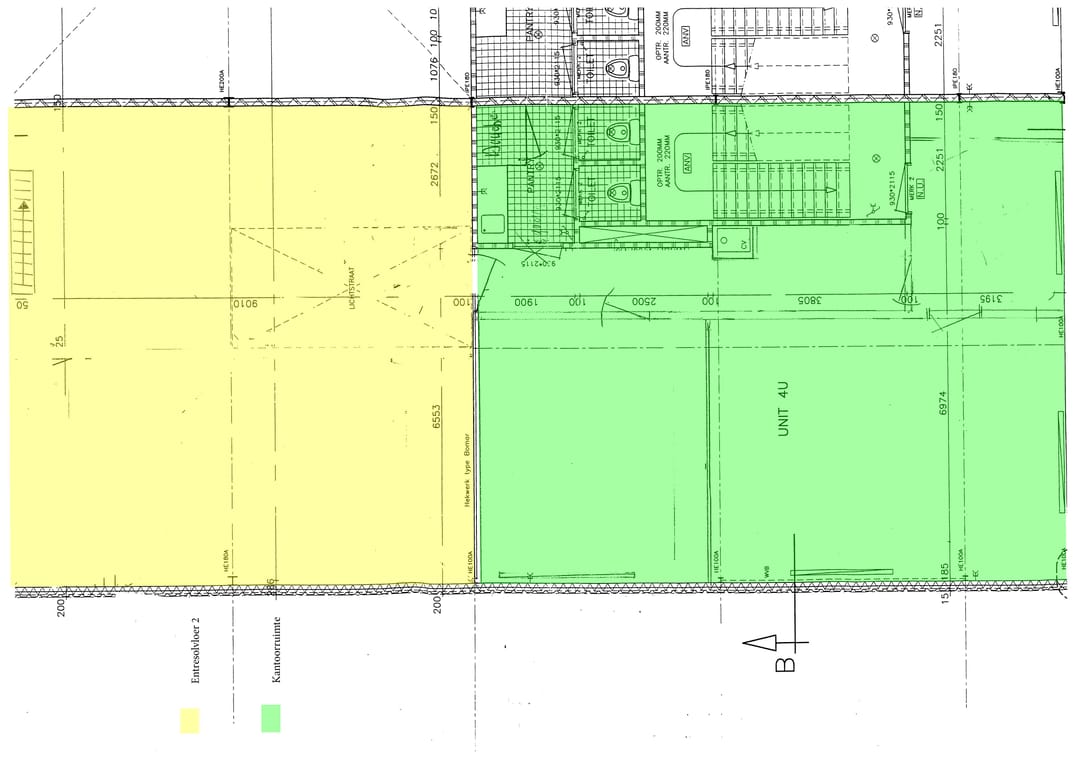 - vrije hoogte op 1e entresolvloer ca. 2,00 meter;