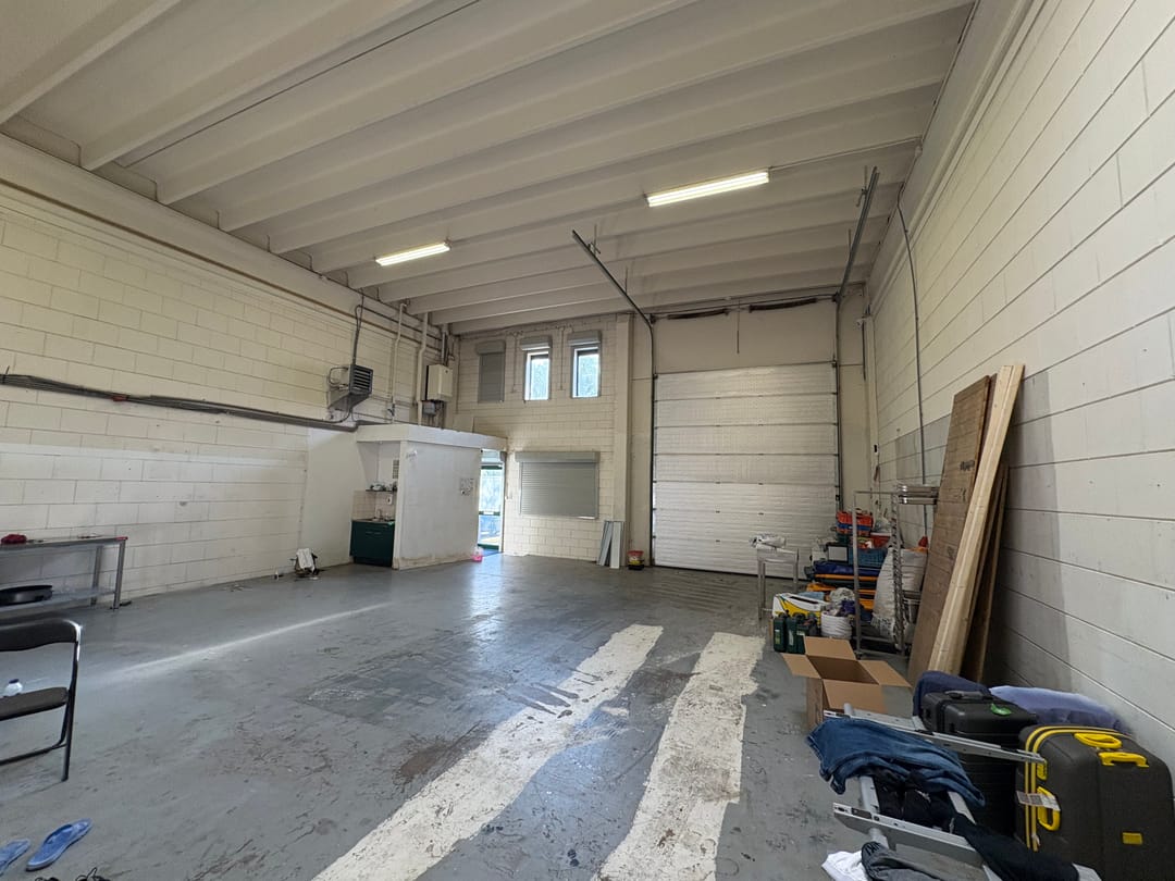 - Overhead doors, concrete floor, heater and toilet