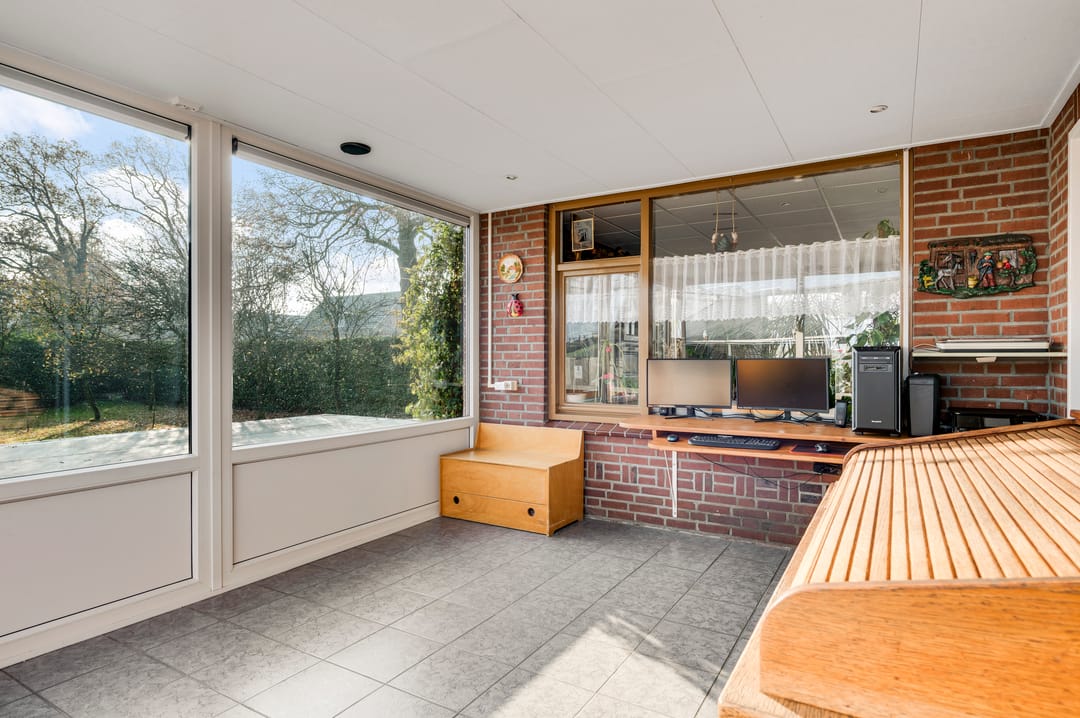 Entree/hal met trappenhuis, L-vormige woonkamer met open keuken voorzien van inbouwkeuken in hoekopstelling, doorloop naar bijkeuken met warmtepomp, toiletruimte met hangcloset en fonteintje, ruime badkamer met ligbad, wastafelmeubel en inloopdouche, serre/tuinkamer (ca. 2001).