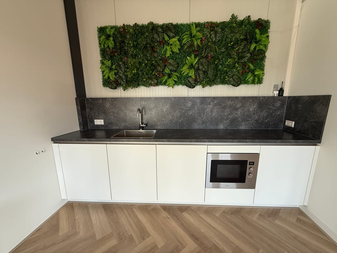 - fraaie keuken met ingebouwde afwasmachine, koelkast en combimagnetron/oven;
