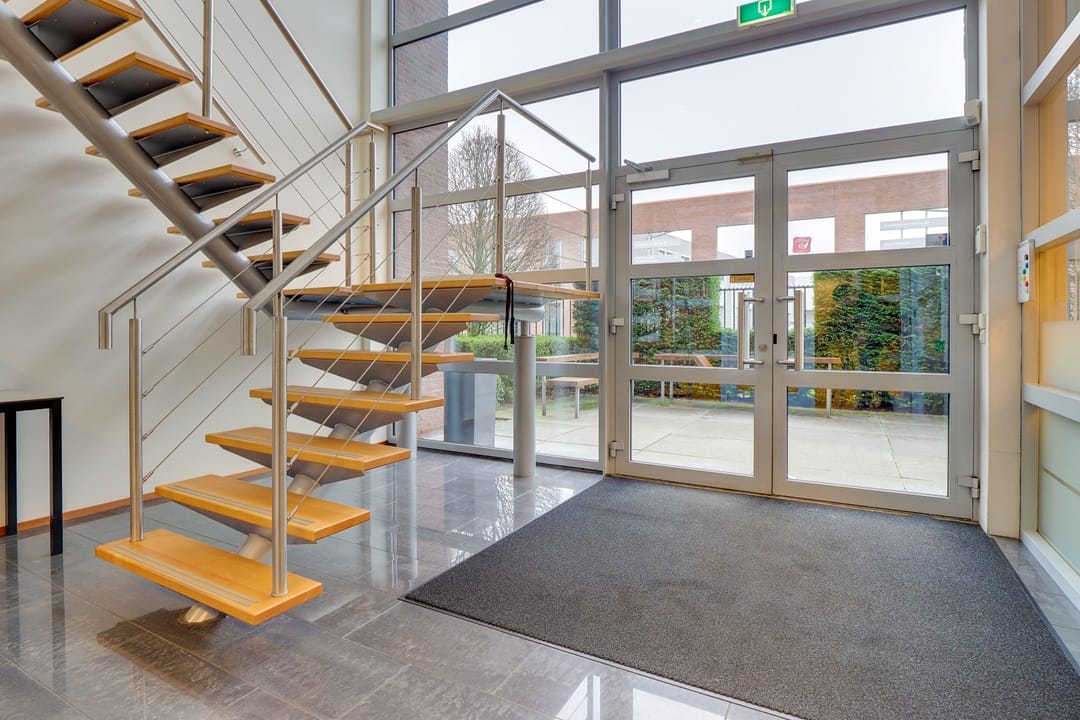 Vrijstaand modern en duurzaam bedrijfspand (A+ label) bestaande uit een ruime bedrijfshal/showroom, representatief kantoor verspreid over twee bouwlagen en een ruim afsluitbaar parkeerterrein gelegen op bedrijvenpark ‘De Meerpaal’ te Houten.