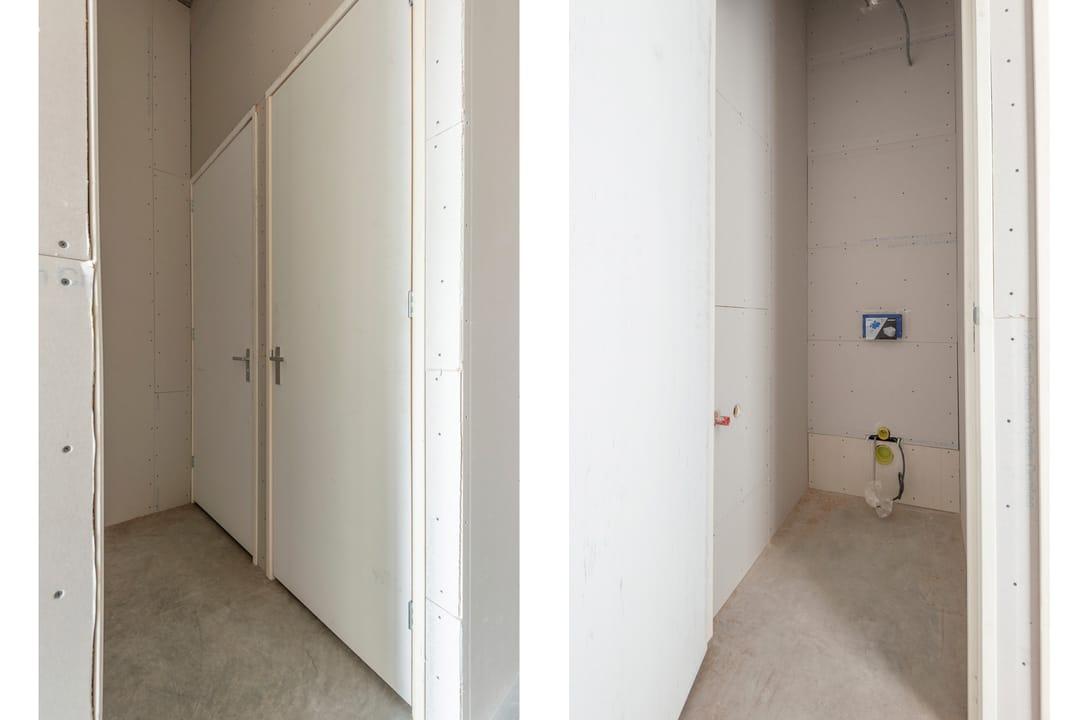 - Concrete floor and toilet