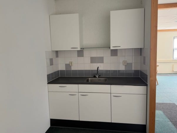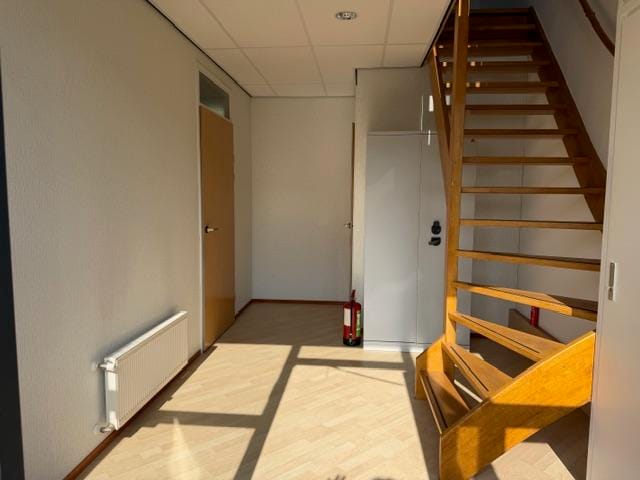 De kantoorverdieping is tevens voorzien van vloerbedekking en lamellen.