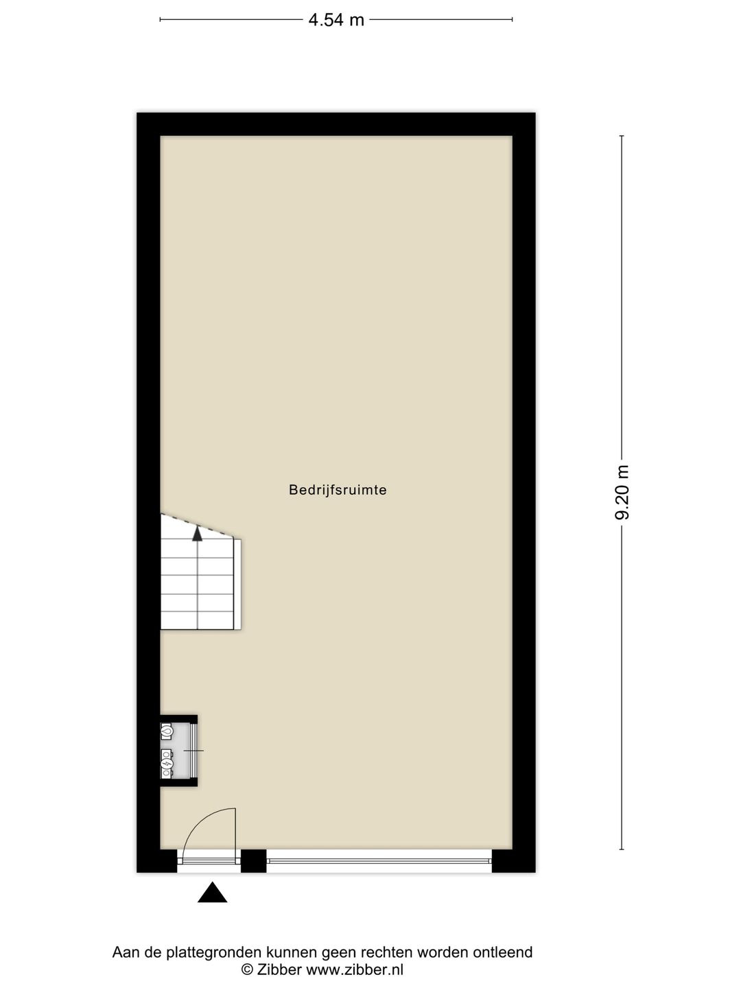 Entree, open bedrijfsruimte, toilet, trapopgang naar kantoorverdieping, pantry.