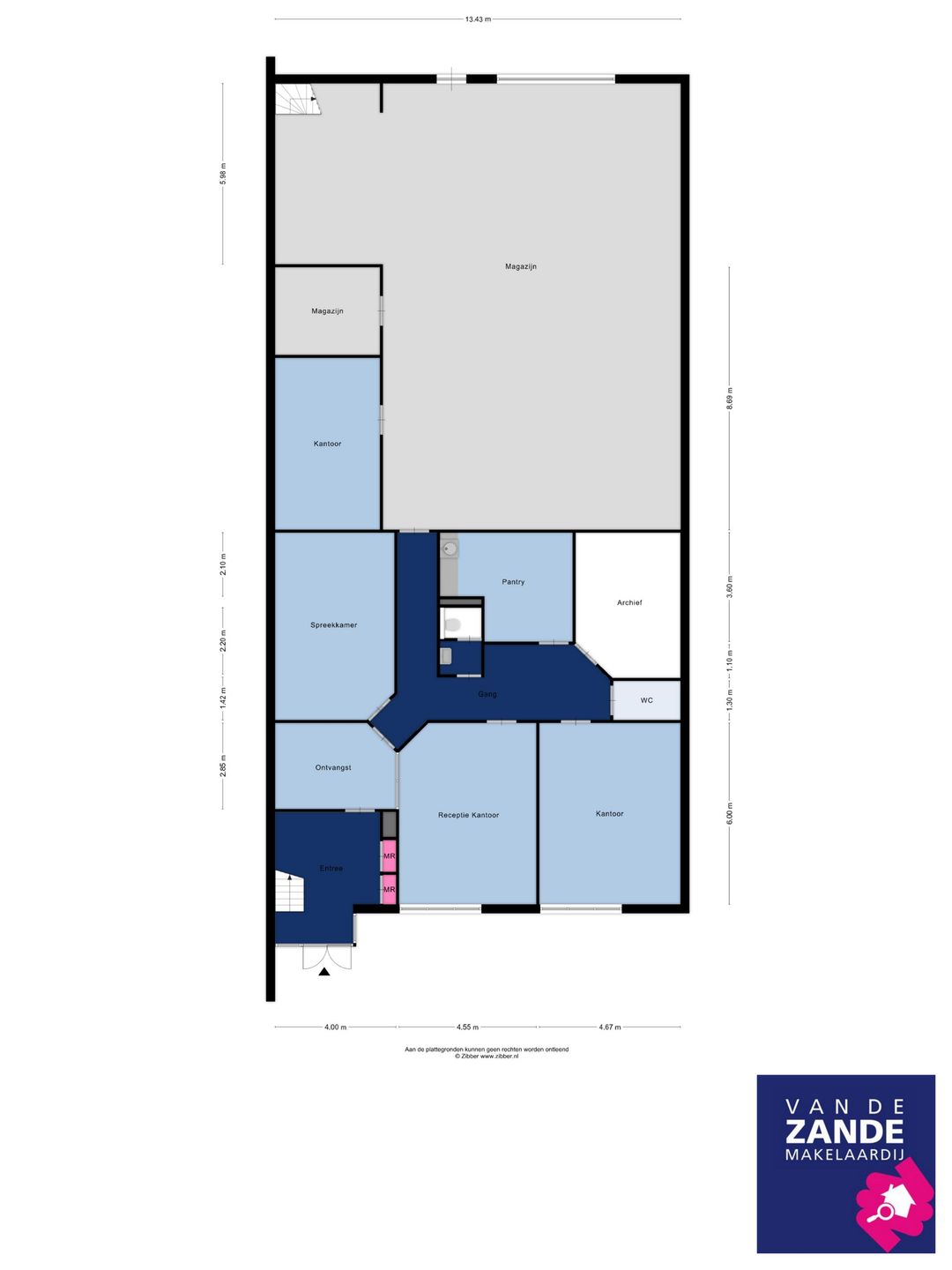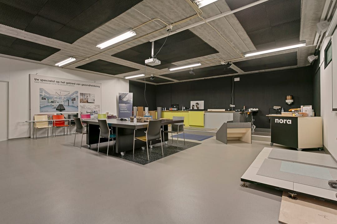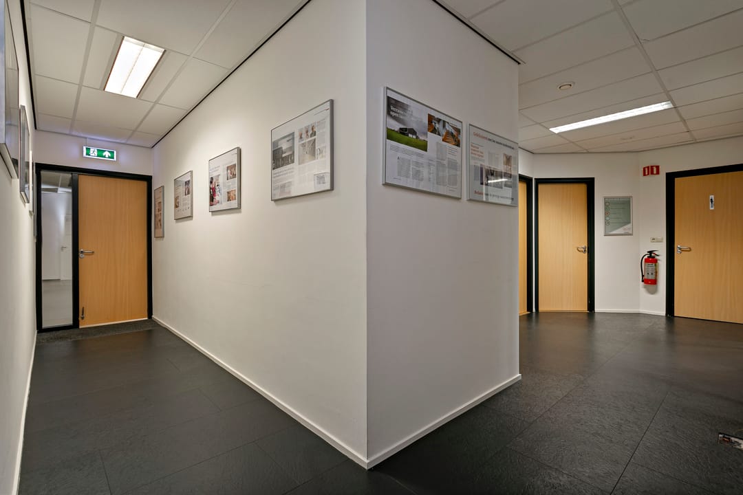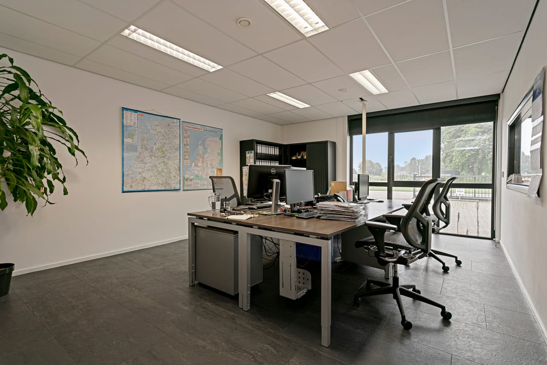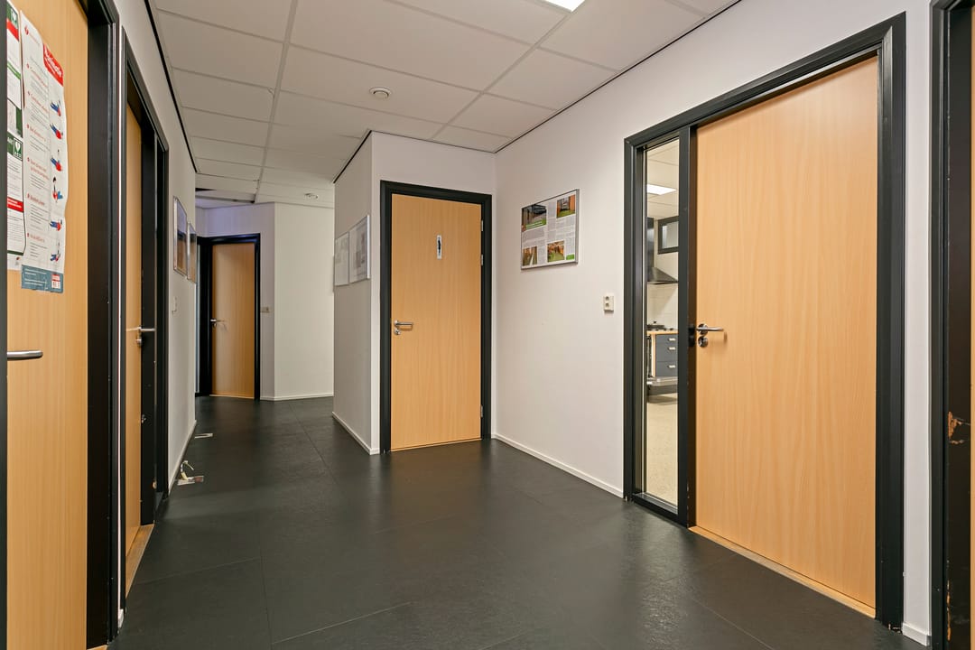 Entree met ontvangstruimte en balie, toegang tot diverse kantoorvertrekken/spreekkamers, toiletvoorziening en kantine. Via de gang is er toegang tot de open bedrijfsruimte/showroom waar ook een apart kantoor is gesitueerd.