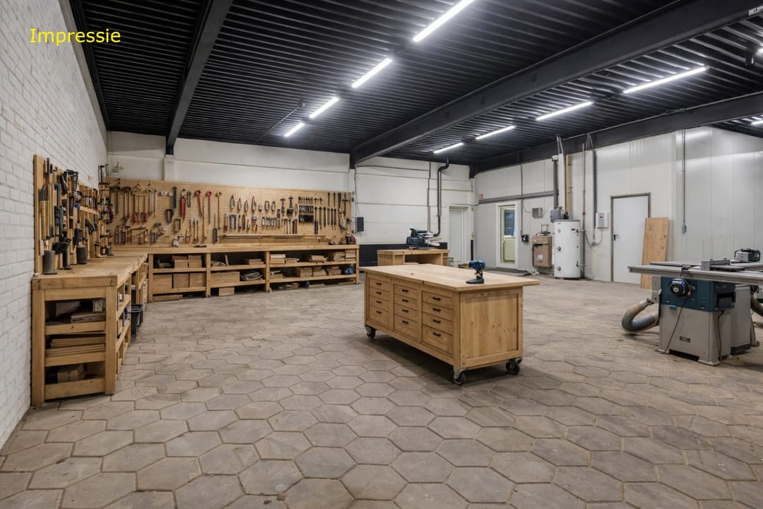 Vanuit de kantine loop je zo de bedrijfsruimte in—ca. 270 m² aan mogelijkheden. Deze hoge, praktische ruimte is ideaal voor opslag, productie, distributie of welk bedrijfsproces je maar kwijt wilt. Er is een extra toiletgroep met wastrog (superhandig voor personeel dat in de bedrijfsruimte werkt). En ja hoor, de logistieke faciliteiten zitten ook snor: maar liefst drie overheaddeuren én twee loopdeuren zorgen ervoor dat je gemakkelijk in- en uitlaadt, hoe druk de dag ook wordt. Alles voelt logisch, efficiënt en klaar voor dagelijks gebruik zonder gedoe.