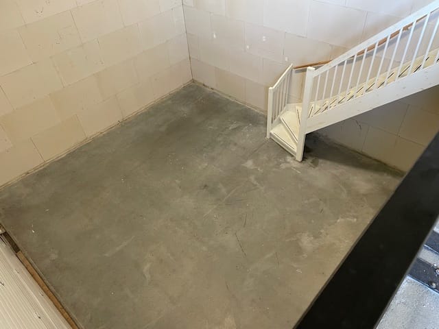 De eerste verdieping is afgewerkt met cementdekvloer en heeft een belasting tot 360 kg/m2;