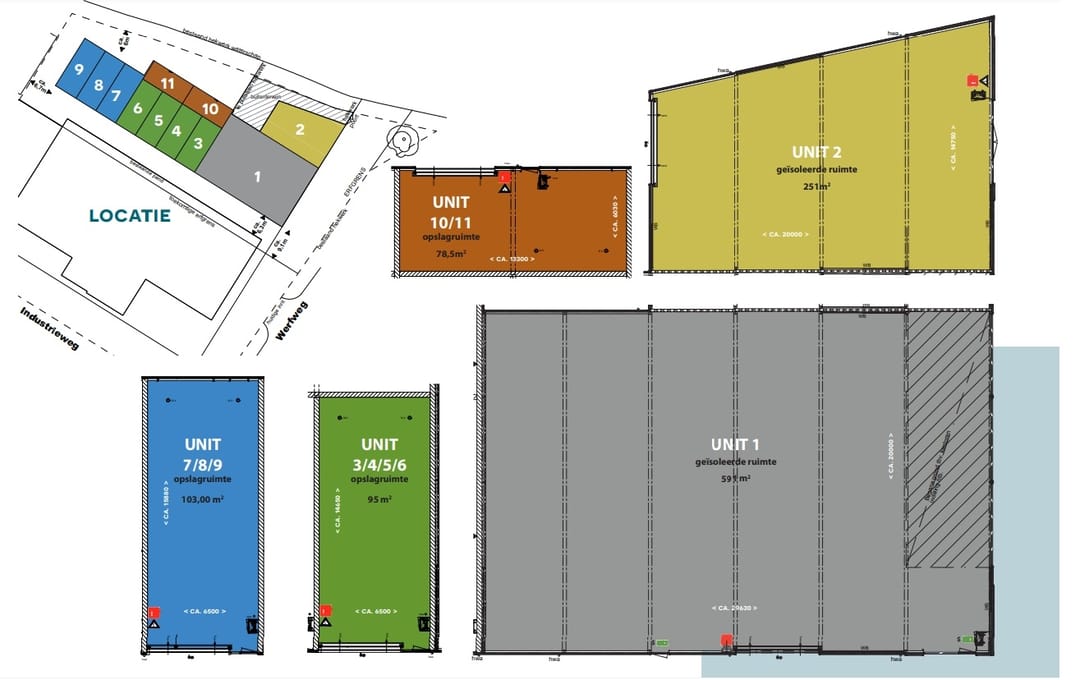 - De unit heeft een elektrische geïsoleerde overheaddeur met een deursparing van circa 4.600 mm * 5.500 mm (b*h).