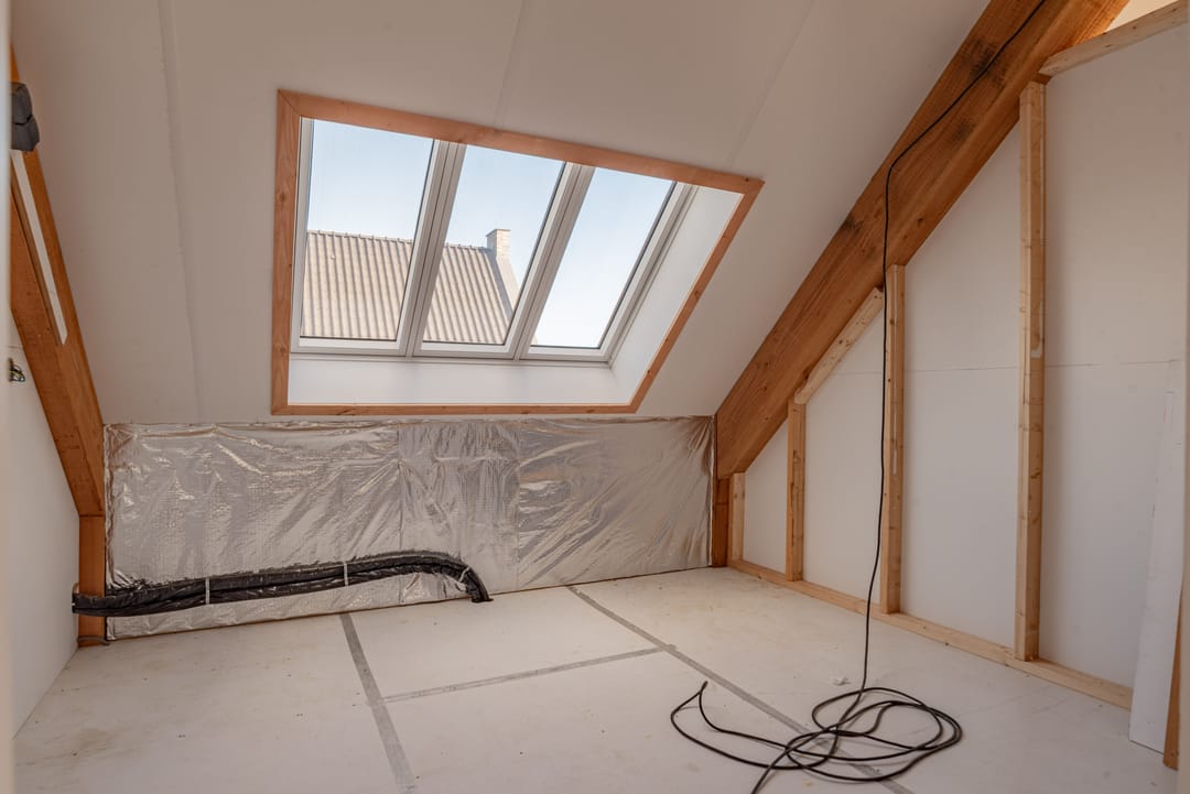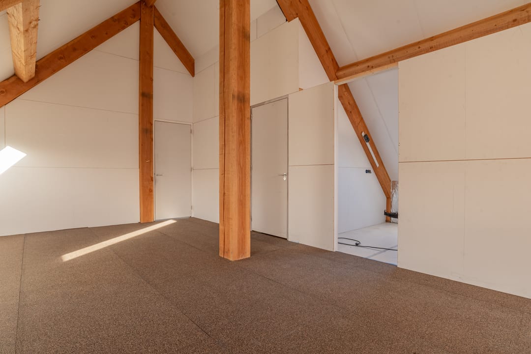 Riante open overloop met twee slaap-/inloopruimtes. Er is momenteel 1 slaapkamer gerealiseerd met een open ruimte waar mogelijk een inloopkast gecreëerd kan worden. De ruime overloop kan naar eigen invulling opgedeeld worden. Denk bijvoorbeeld aan 2 riante slaapkamers of een werkkamer en extra slaapkamer. Aansluitingen voor een royale badkamer zijn al aanwezig tot in de onderliggende ruimte en kunnen makkelijk worden doorgetrokken.