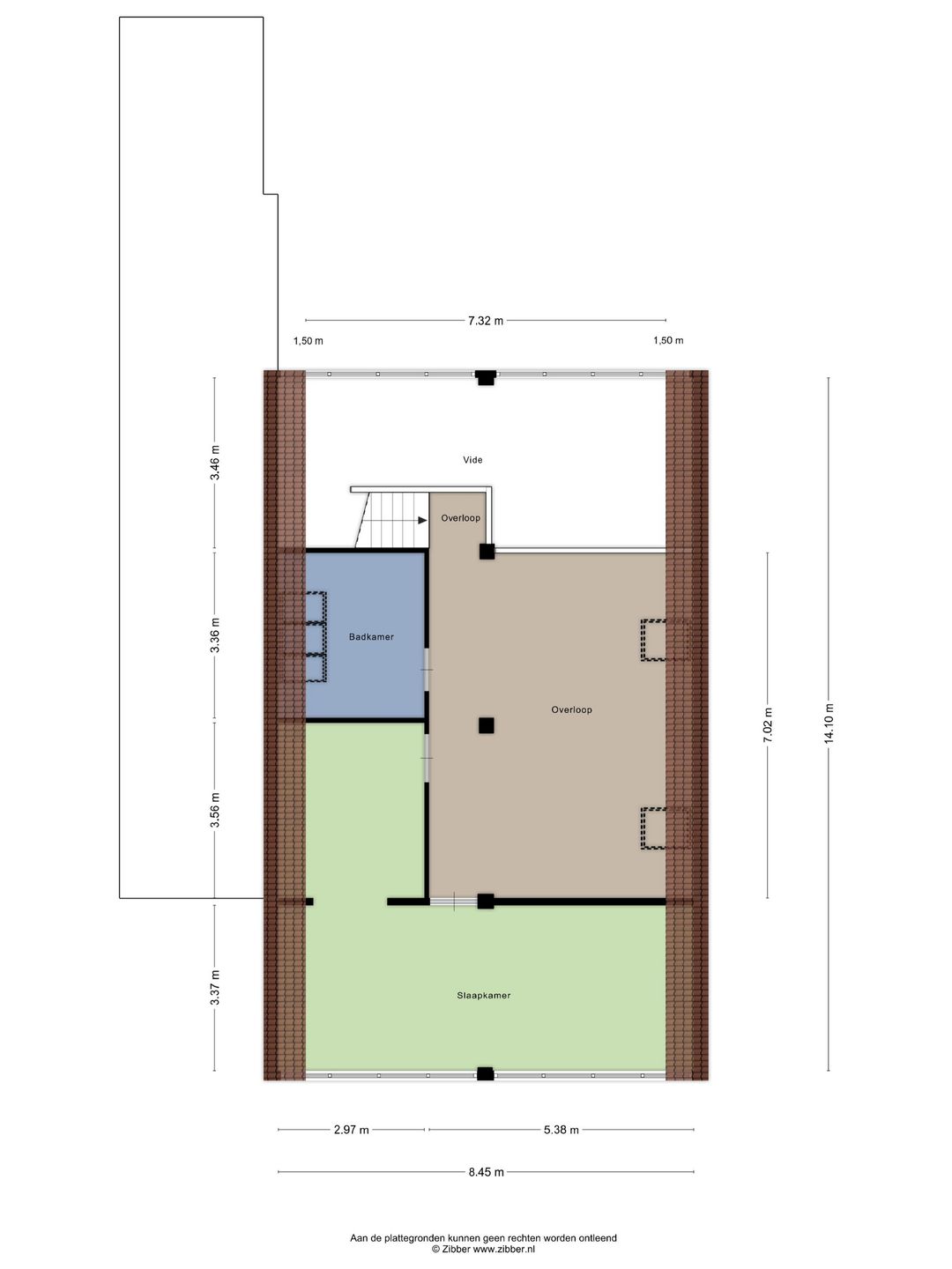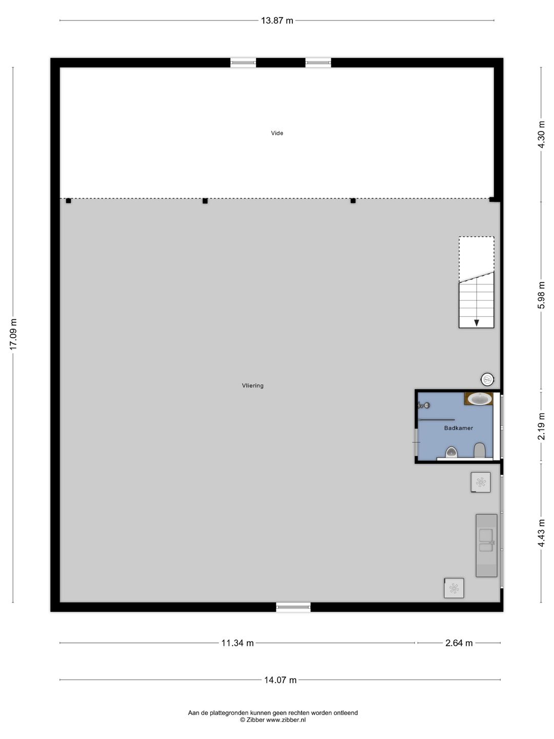 Verdieping: ca. 12,5 × 14 m, inclusief handige kitchenette en een badkamer op de verdieping.