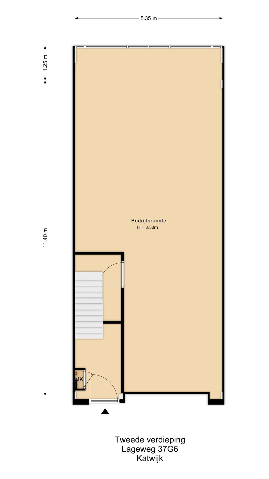 66 m2 VVO (70 m2 BVO) bedrijfsruimte.